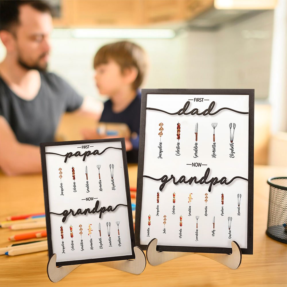 Esta placa de madera para barbacoa sirve como recordatorio duradero de la apreciada relación entre un padre o abuelo y sus hijos o nietos. Es un regalo bien pensado para cumpleaños, el Día del Padre o cualquier ocasión especial, ya que ofrece una muestra sincera y sentimental que se atesorará durante años.