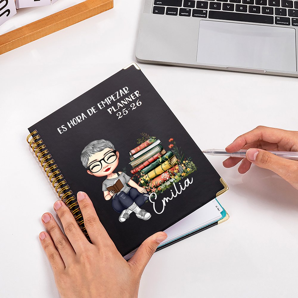 Nuestro planificador tiene cinco colores de portada y está decorado con personajes de dibujos animados adorables. Independientemente del género o la edad, puedes personalizarlo según tu imagen y combinarlo con elementos como libros y flores, que transmiten energía y vitalidad. Puedes añadir tu nombre y título para crear un planificador único y mostrar tu encanto.