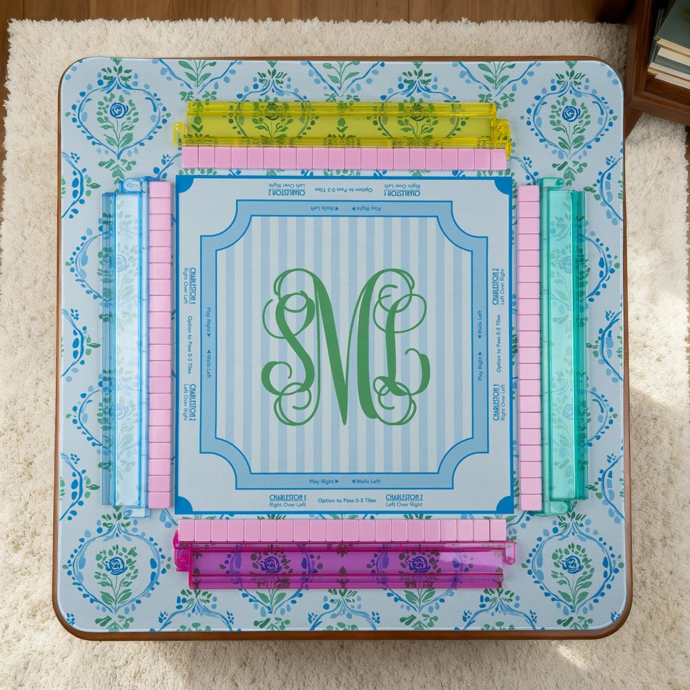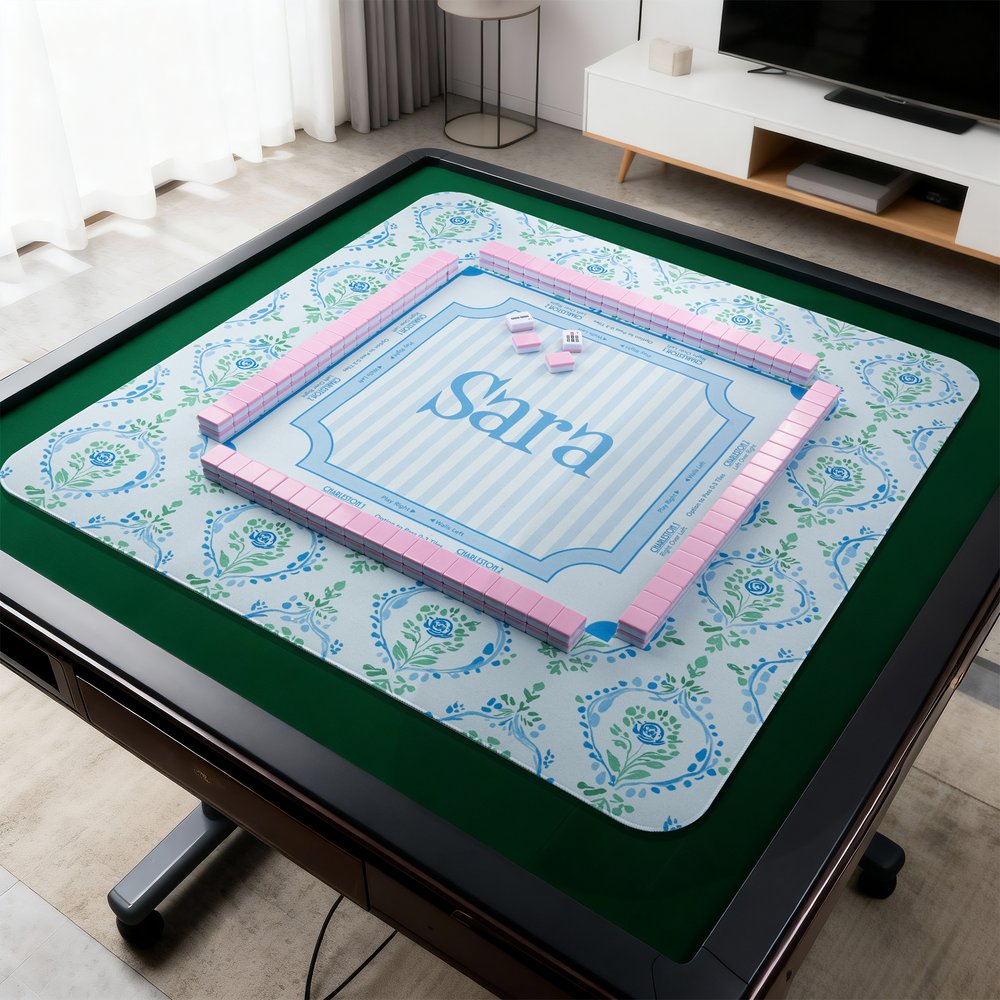 Este tapete de mahjong presenta una encantadora combinación de colores azul claro, adornada con bonitos motivos florales que combinan estilo con un toque clásico. Ofrecemos opciones de personalización únicas, que le permiten añadir su nombre o una combinación de letras de parra, creando un ambiente personalizado para cada partida. No es sólo un artículo funcional; es un reflejo de su personalidad y gusto, revitalizando su mesa de mahjong.