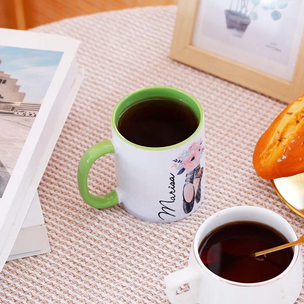 Esta taza adopta un diseño temático de ballet, con pasos de baile de ballet en la parte delantera y hermosas flores, que muestran un temperamento elegante. Puede imprimir su nombre en la taza para crear una taza que realmente le pertenezca.