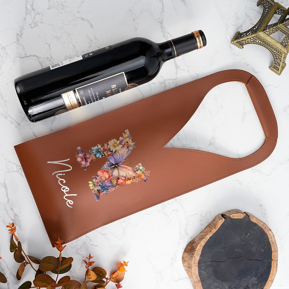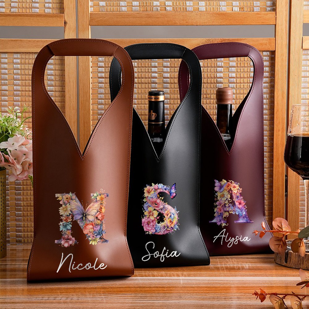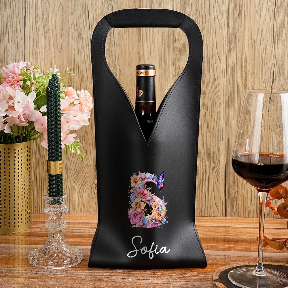 Diseñada para quienes aprecian la sofisticación, esta elegante bolsa para vino incorpora una delicada inicial floral que añade un toque de encanto personalizado. Personalícela con un nombre o un monograma para hacer un regalo atento y práctico que destaque, ideal para amigos, familiares y entusiastas del vino.