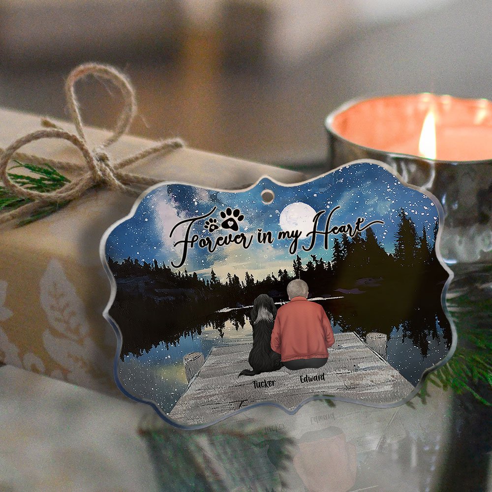 El mensaje "Forever In My Heart" está bellamente impreso en el adorno, recordando los buenos momentos compartidos entre perros y dueño.