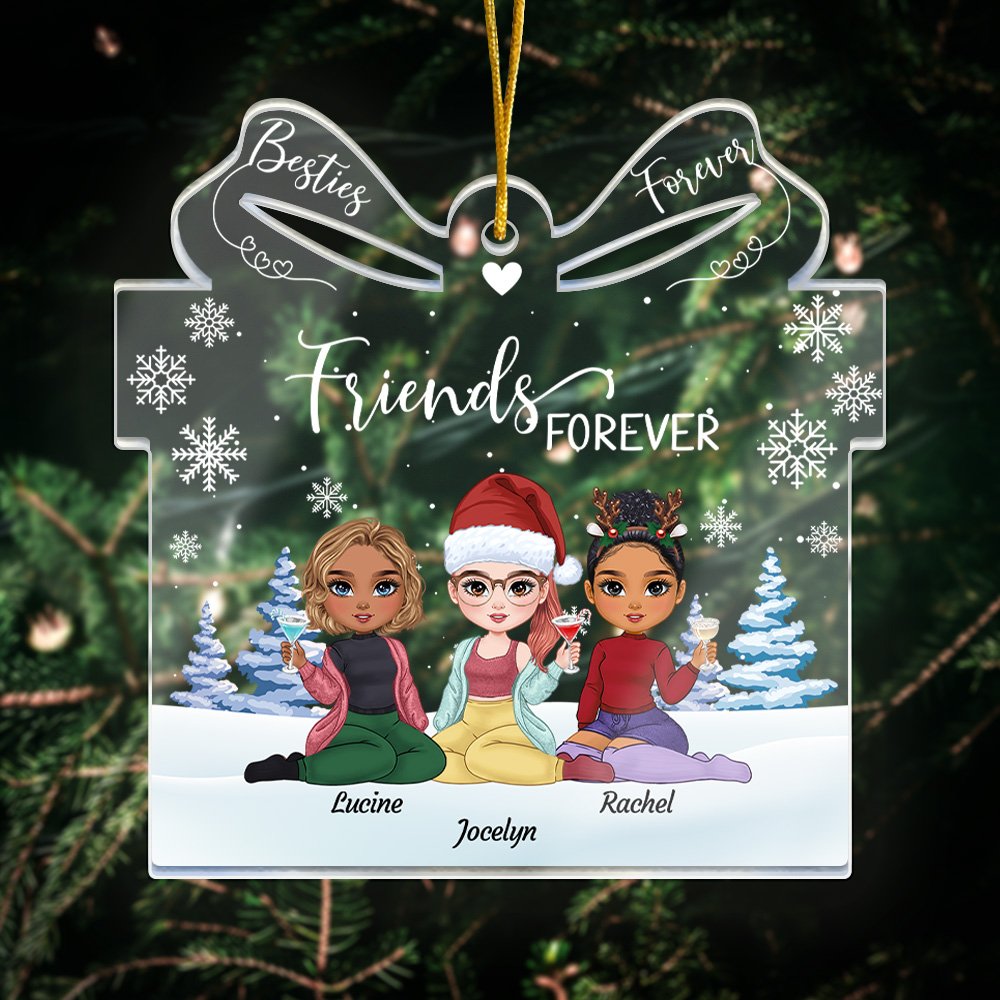 Con un diseño único, este adorno colgante acrílico presenta una encantadora escena combinada con un elemento navideño que muestra una conmovedora imagen de amigos pasando tiempo juntos. Con el añadido de "Amigos para siempre" y un mensaje personalizado, será un recuerdo especial que celebra el amor eterno entre las personas.