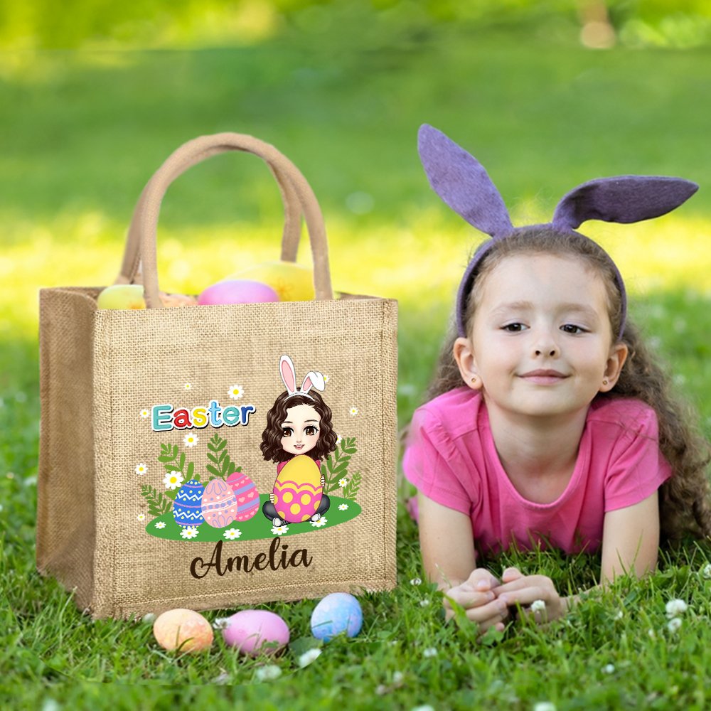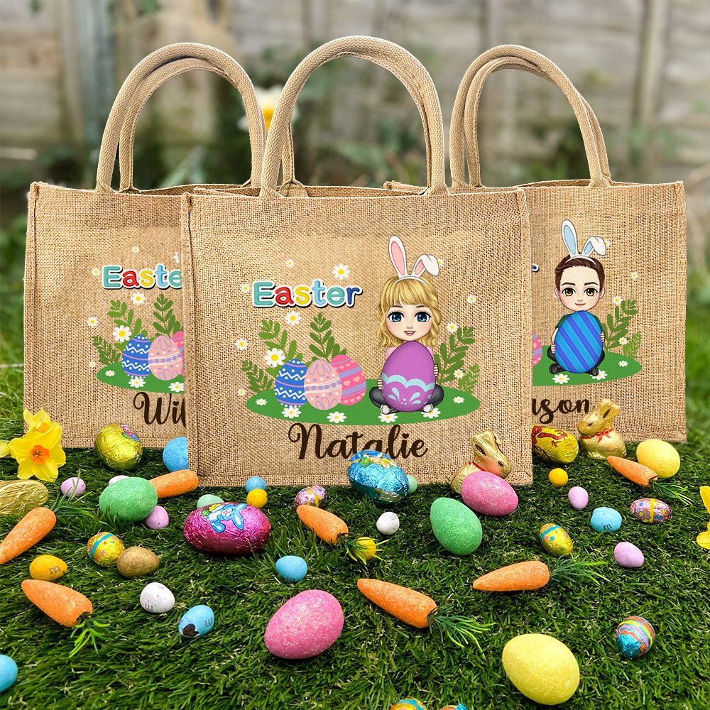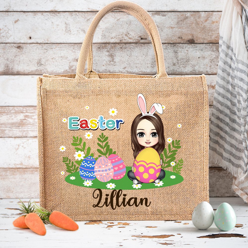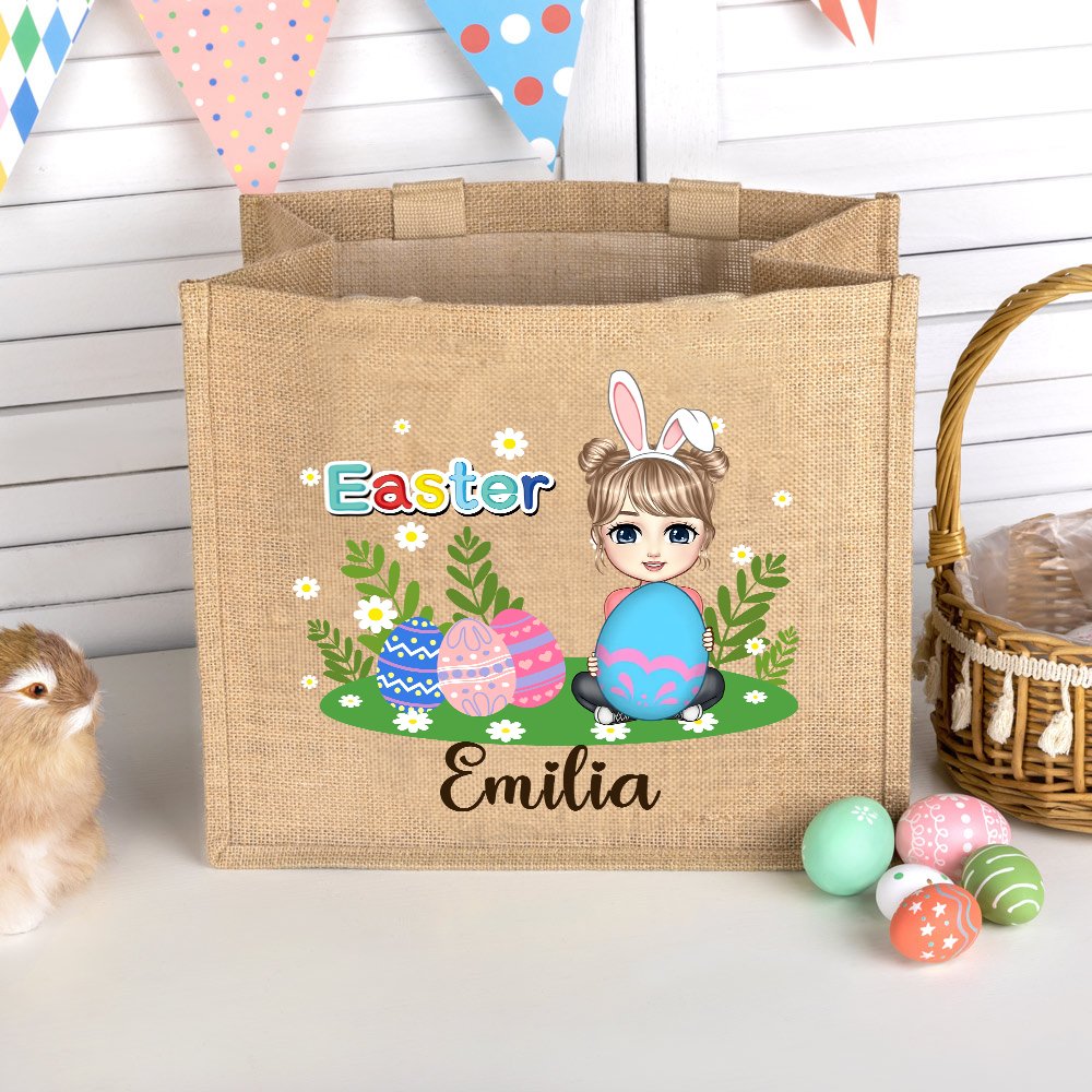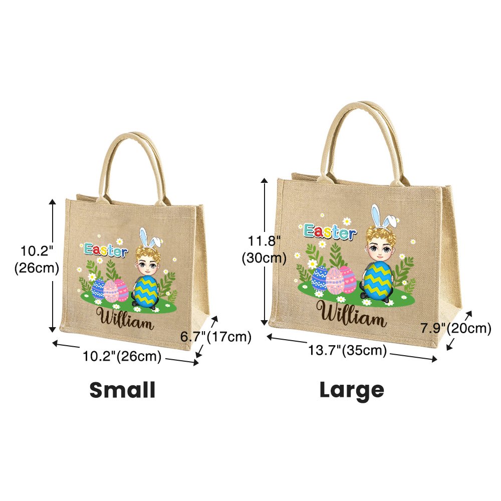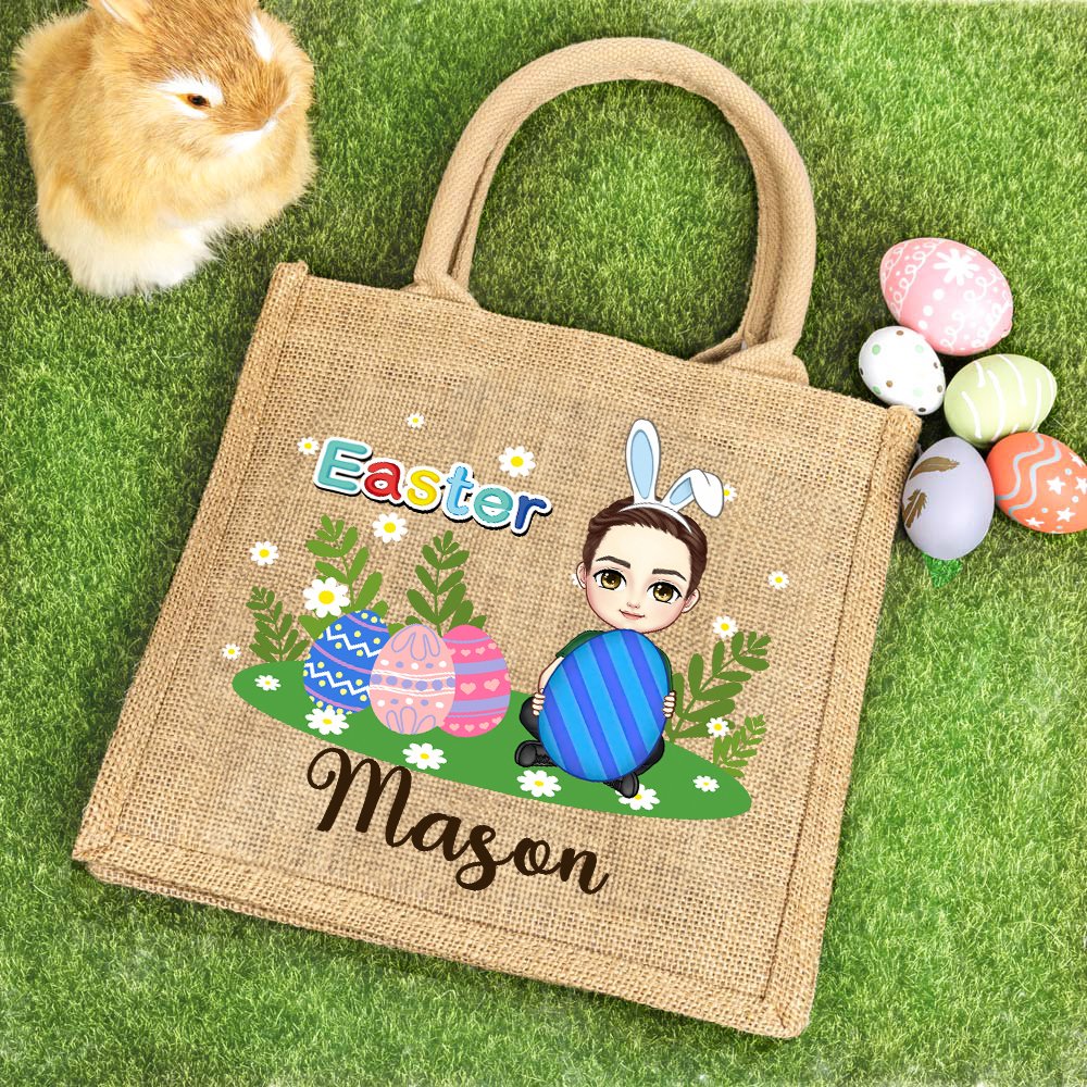 En este bolso destaca un personaje de dibujos animados que sostiene un huevo de Pascua, y cada detalle está lleno de diversión y creatividad infantiles. Los personajes de dibujos animados del bolso son monísimos, combinados con bonitas flores y hierba vibrante, lo que hace que los ojos de la gente brillen al instante. También puede añadir el nombre de su hijo para dar un significado especial a los preparativos de las fiestas.