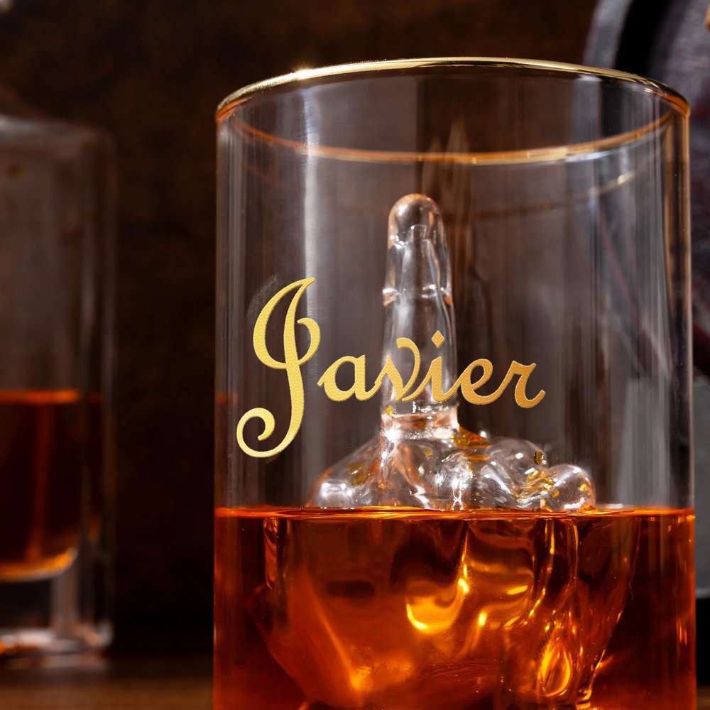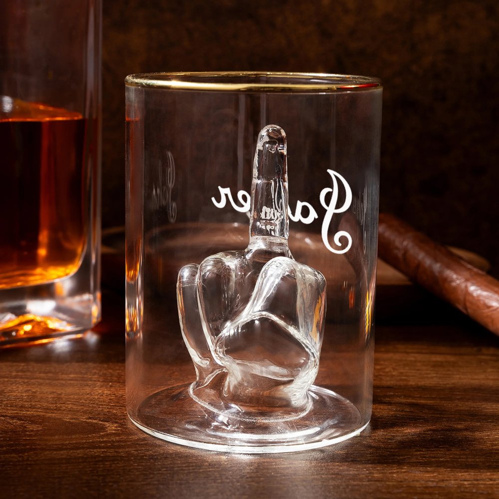 El llamativo diseño del dedo corazón le da a este vaso de whisky un toque atrevido y original. Se puede personalizar con dos tipos de letra, añadiendo un toque personal a cada brindis. Ya sea para disfrutar de una copa a solas o con amigos, este vaso con texto personalizado atraerá todas las miradas y aportará diversión y personalidad a tus momentos de ocio.