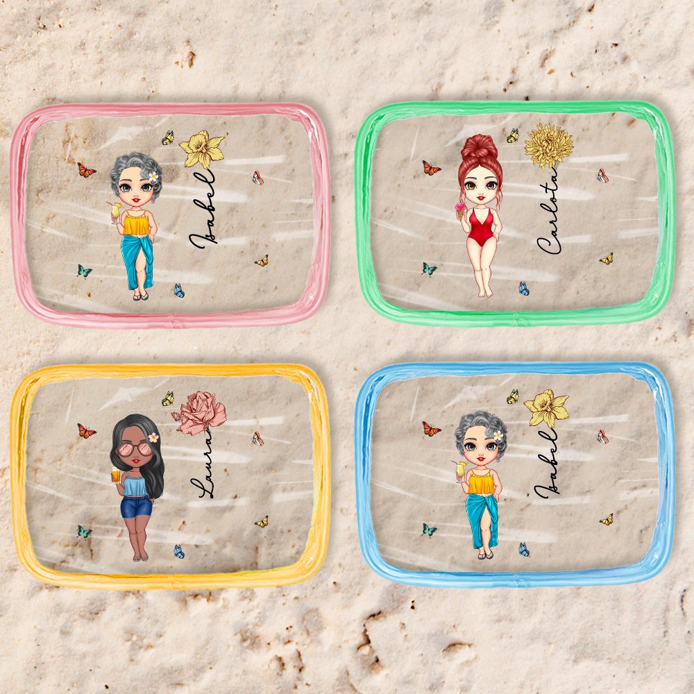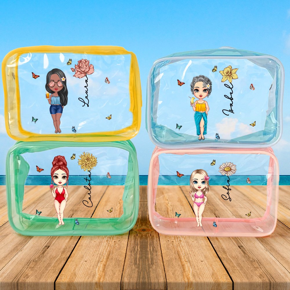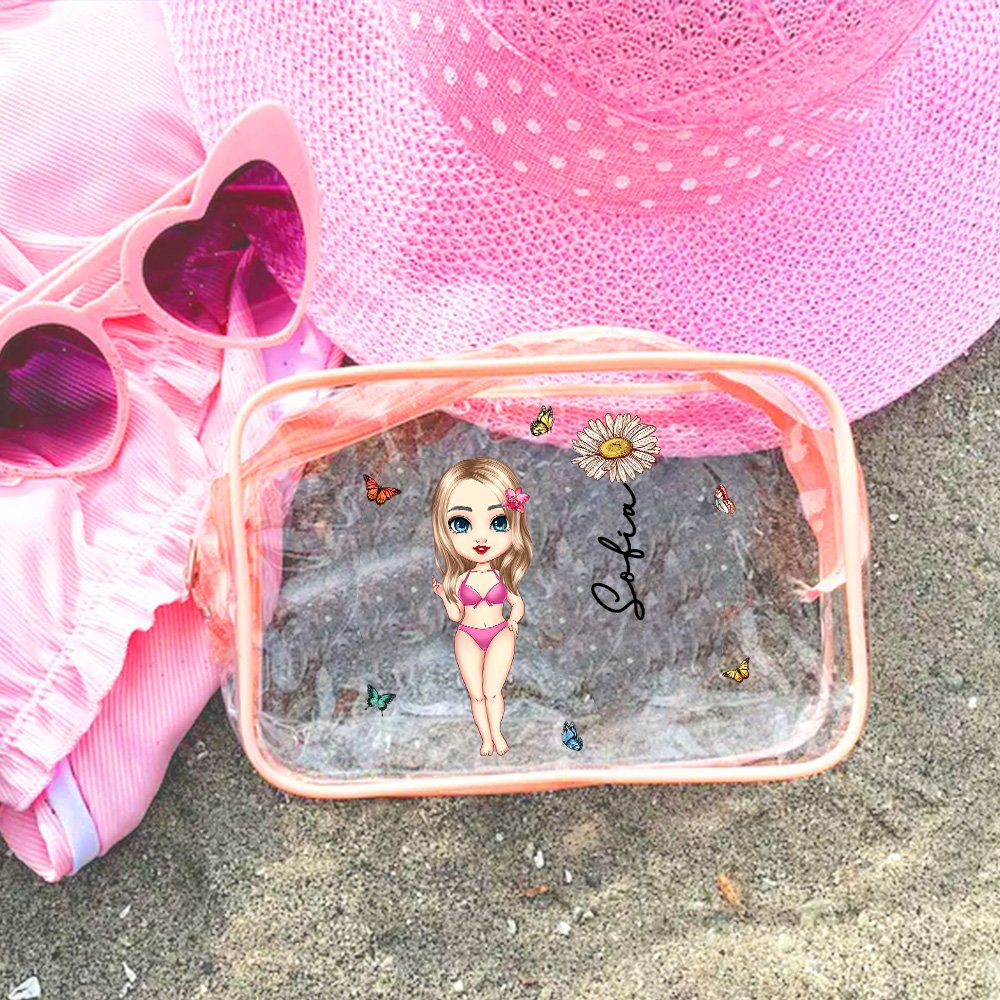 Este neceser de maquillaje tiene un diseño temático de personajes con estilo de vacaciones en la playa. Los personajes se pueden personalizar, con diseños únicos y llenos de diversión infantil. También está acompañado de flores de cumpleaños, cada flor simboliza un mes de cumpleaños diferente, para que cada chica pueda encontrar su flor de cumpleaños y mostrar su encanto único.