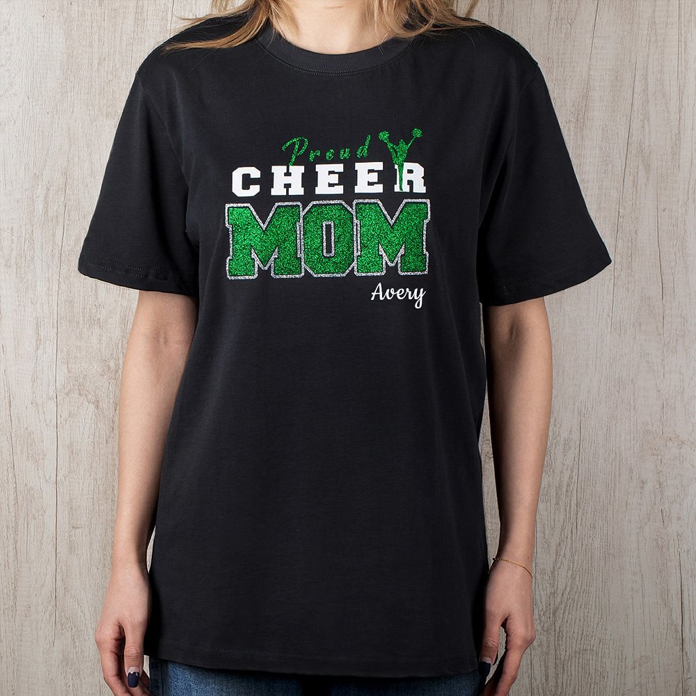 Divertido gráfico de mamá animadora e impresión del nombre, manga corta informal, diseño clásico de cuello redondo, la hacen moderna y sencilla. Otro punto sorprendente es que hemos añadido trozos de purpurina a la superficie de la MOM, lo que la hace muy bonita e individual. Diseño único y divertido, y hace un gran regalo para los amantes del deporte.