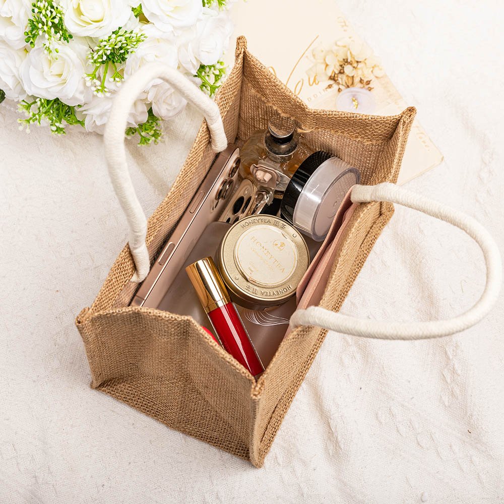 Este bolso está cuidadosamente confeccionado con yute 100%. La textura natural de la arpillera confiere al bolso una textura original. No sólo es resistente y duradero, sino que también tiene una buena transpirabilidad. Al mismo tiempo, el diseño de la película impermeable del forro interior evita eficazmente que los artículos internos se mojen, satisfaciendo sus diversas necesidades para los viajes diarios.