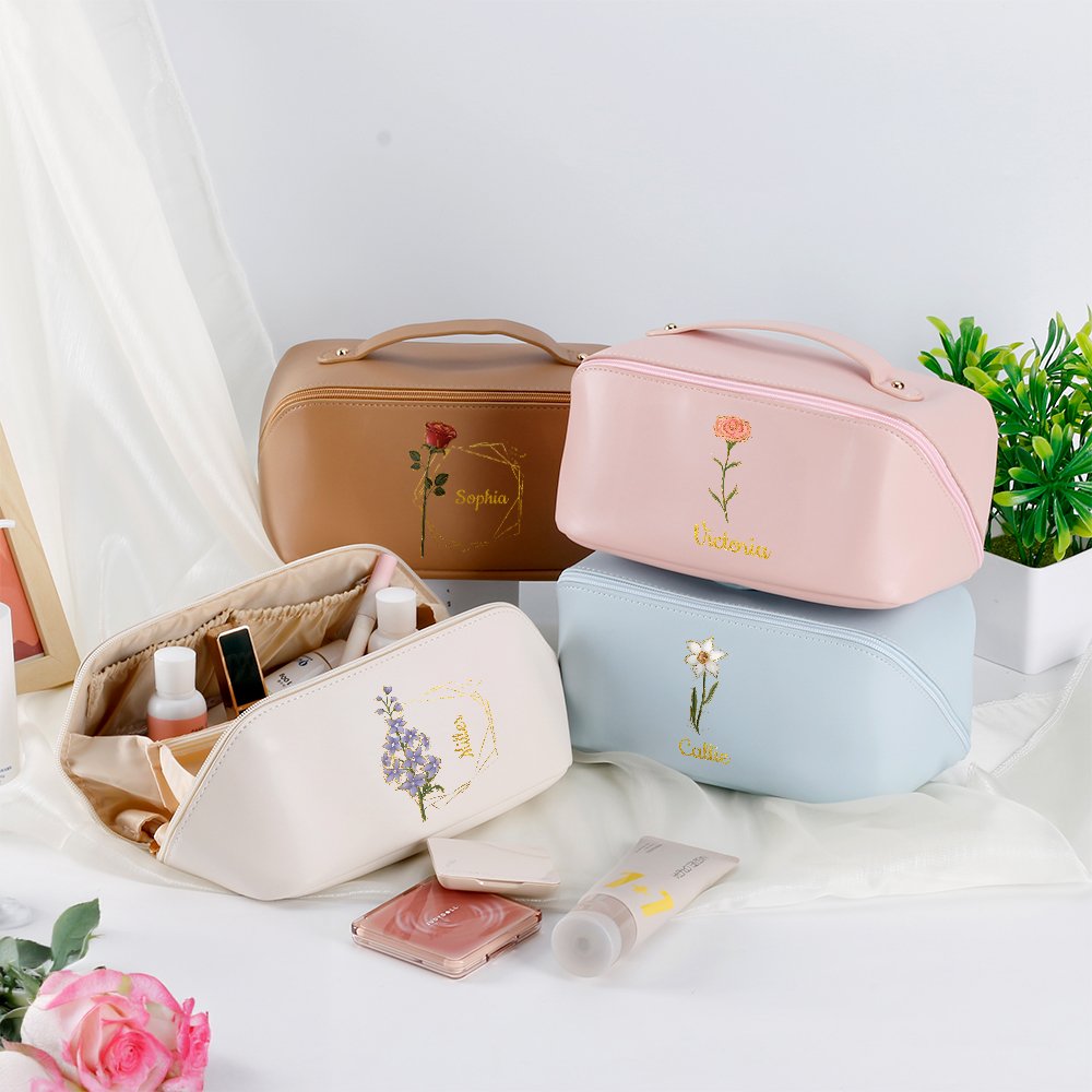 Este neceser representa con delicadeza la flor de nacimiento de cada mes, y las delicadas líneas geométricas doradas se entremezclan hábilmente con exquisitos adornos dorados, mostrando un aire moderno a la vez que conserva un estilo elegante. Lo más especial es que admite la personalización del nombre, lo que lo convierte en un neceser único que le pertenece.