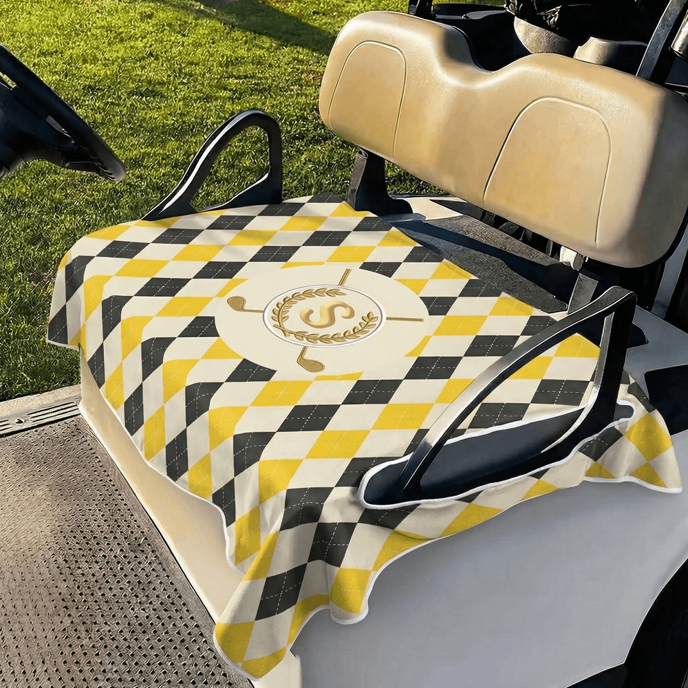 Esta funda de asiento presenta un diseño clásico en damero y ofrece diversas opciones de diseño, como pelotas y palos de golf, para mostrar su pasión por este deporte. También puede personalizarse con su nombre e iniciales, lo que la convierte en un recuerdo único.