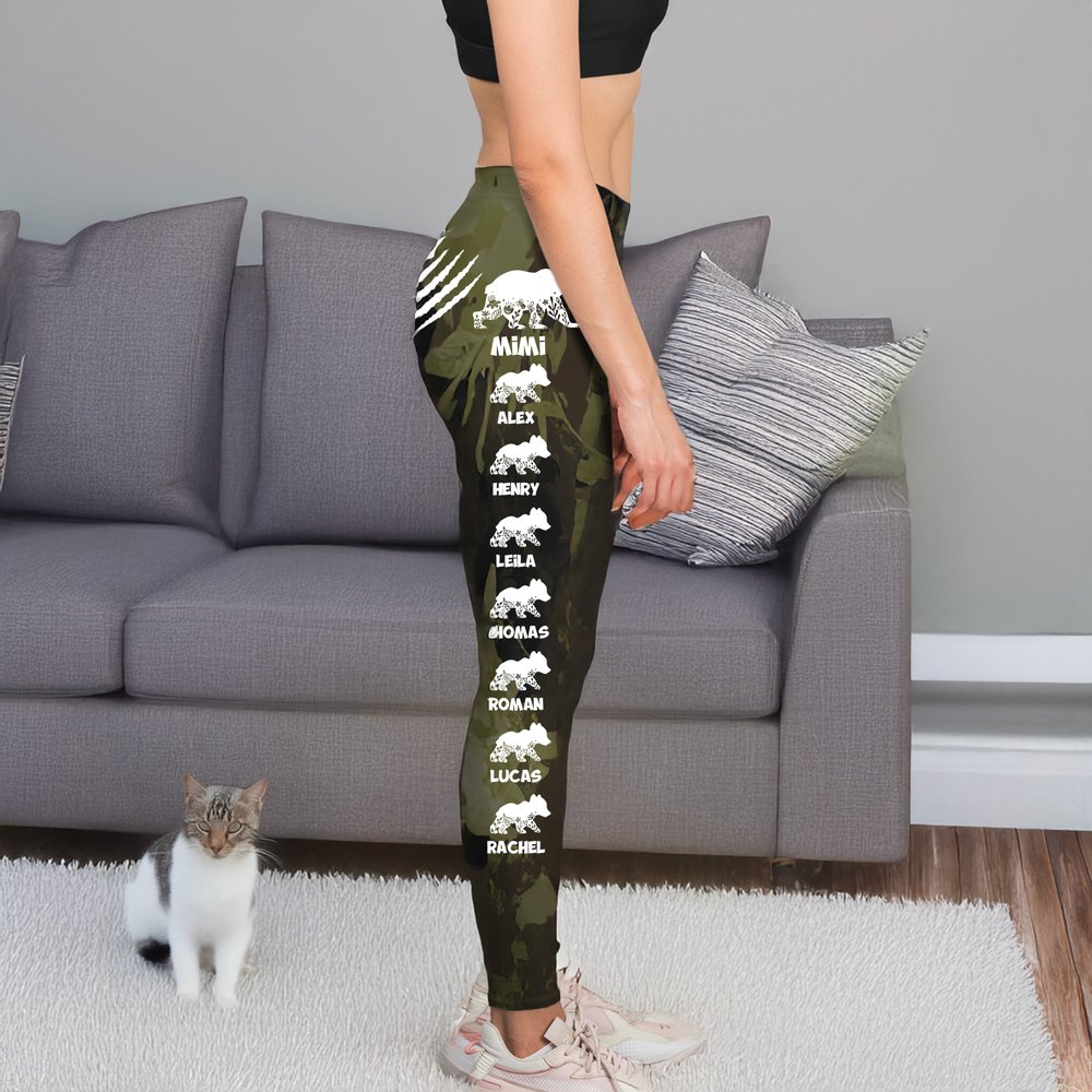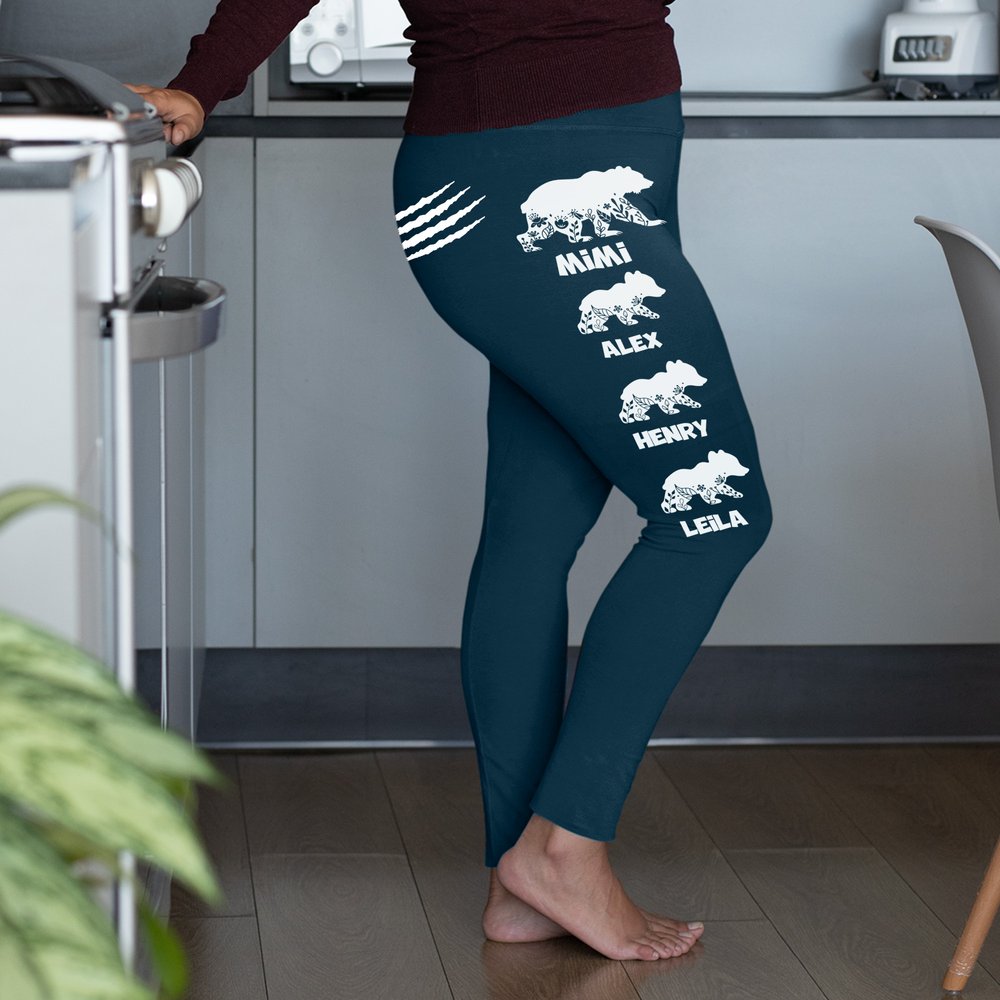 Este par de leggings diseñados con una simpática familia de osos de dibujos animados como tema principal, muestran la cariñosa escena de la madre osa y sus oseznos. No sólo puedes personalizar el título, sino también los nombres de 1 a 10 osos. Además, puedes elegir entre 12 colores de leggings según tus preferencias.