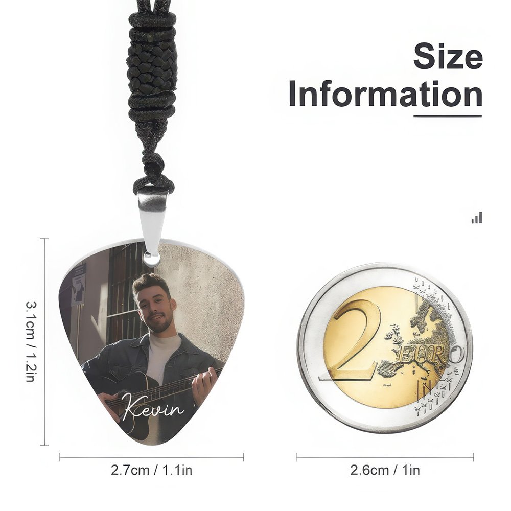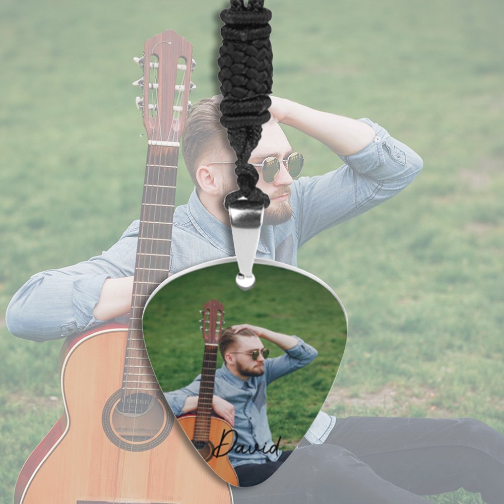 Cada colgante de púa puede grabarse cuidadosamente con una imagen personalizada para dejar constancia de los maravillosos momentos de los amantes de la guitarra. También puede elegir grabar su nombre en fuentes blancas o negras para satisfacer diferentes necesidades de personalización y crear un collar exclusivo único.