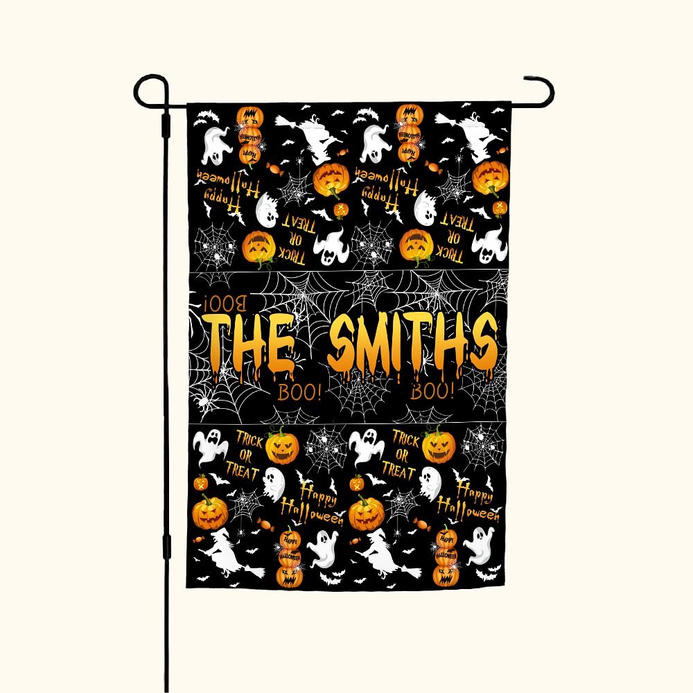 Esta bandera de jardín con calabaza de Halloween, personalizada con tu nombre, aporta un espíritu festivo único a tu decoración navideña. Los elementos clásicos, como calabazas, fantasmas, telarañas y murciélagos, se combinan para crear un misterio y una alegría únicos para su jardín, consiguiendo que usted y su familia se emocionen por las próximas vacaciones.