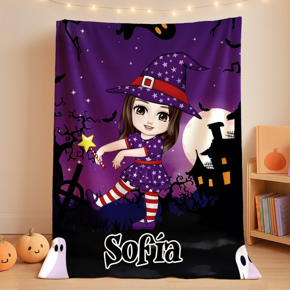 Inspirada en Halloween, esta manta combina a la perfección la alegría festiva con los elementos de Halloween. Presenta cuatro motivos de fondo para elegir y adorables personajes de dibujos animados que puedes personalizar a tu gusto. Puedes vestir a las figuras de dibujos animados con diversos disfraces de Halloween, creando un ambiente festivo. Además, puedes personalizar cada manta con el nombre de tu hijo, lo que la convierte en un artículo único.