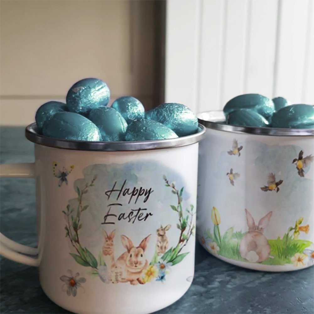 La taza está diseñada con un vívido patrón floral de conejito de acuarela y también puede ser el nombre personalizado en la taza, es perfecto para cestas de Pascua, escondites en una búsqueda de huevos, ¡o aquellos que aman a los conejitos lindos!