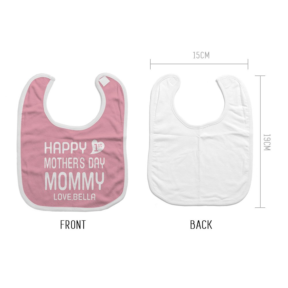 Este babero para bebé, diseñado con la frase "Feliz 1er Día de la Madre", es un regalo práctico y bien pensado para que la nueva mamá conmemore su primer Día de la Madre de una forma significativa. El babero sirve como dulce recordatorio de la alegría y el amor que conlleva la maternidad.