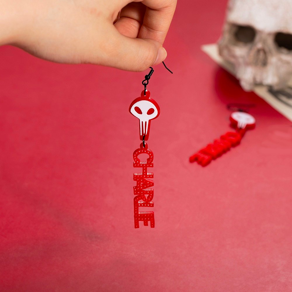 Este es un par de pendientes de calavera puede personalizarlos con un nombre, son un accesorio especial para los fans del cosplay.
