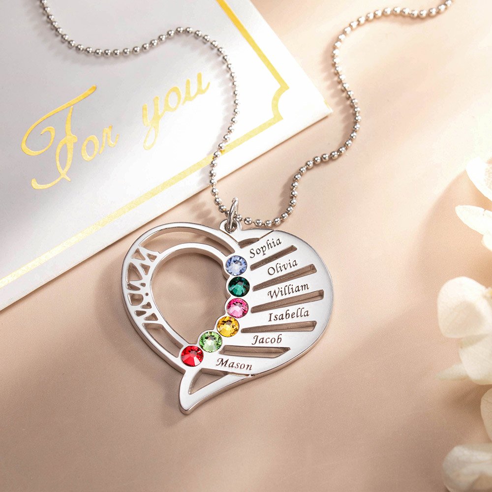 el collar de piedras de nacimiento en forma de corazón de Callie Gift está adornado con una a seis piedras de nacimiento, nombres personalizados y un "mamá" ahuecado. Con delicadas líneas geométricas y una cómoda cadena de cuentas, el diseño tiene un aire elegante y retro. -Inspiración del diseño: la forma de corazón es un elemento popular y clásico desde siempre. El diseño está inspirado en el amor de la familia y mantener a la familia y los momentos especiales cerca de su corazón. -Ocasión del regalo: cumpleaños de mamá, Día de la Madre, Día de San Valentín, aniversario, reunión familiar, Navidad, etc. -Regalo Destinatario:madre, esposa, abuela, darse un capricho, etc. -Este producto único y sincero se embala con la caja hermosa y alista para dar. Nota: La primera letra del nombre o palabra se escribe en mayúsculas por defecto.