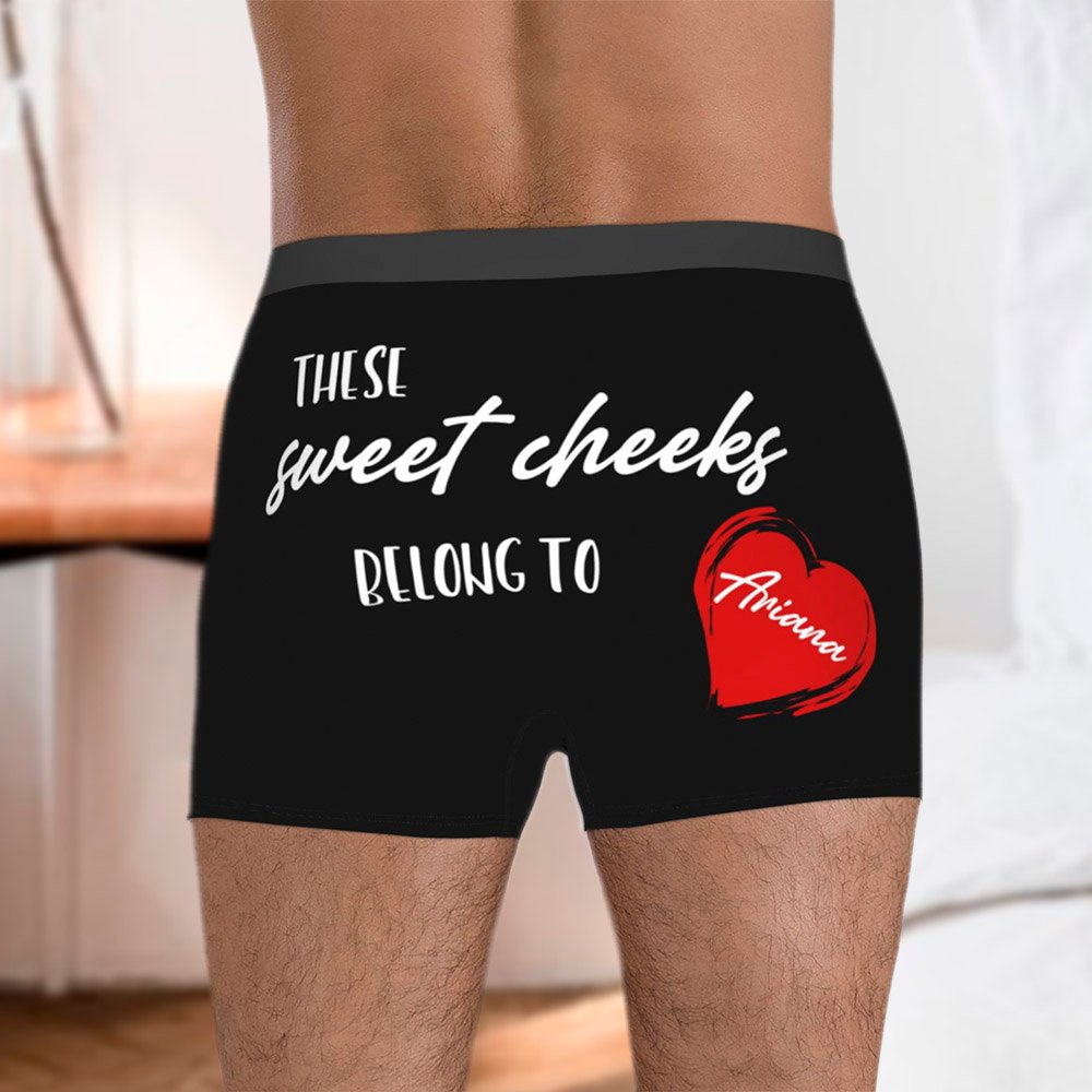 Puedes personalizar el nombre en forma de corazón después de "These sweet cheeks belong to". A diferencia de los regalos ordinarios, este tipo de regalo ajustado muestra perfectamente tu intención y pone de manifiesto la masculinidad de tu hombre amado de una forma nueva.