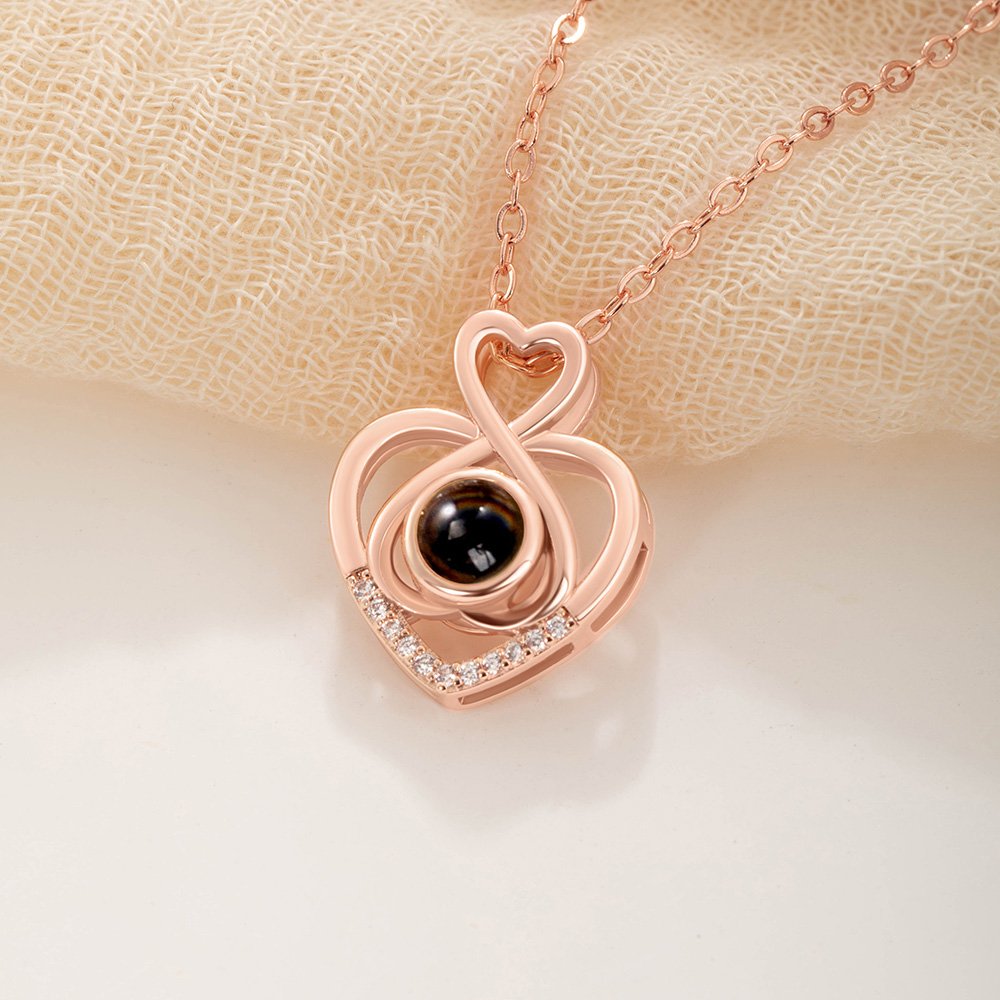 Este collar presenta un diseño único en forma de corazón, que simboliza el amor de corazón a corazón y eternamente conectado. Además, incorpora tecnología de miniaturización. Con sólo colocarlo bajo la luz, puede proyectar sus fotos más preciadas, devolviéndole los recuerdos a los ojos en cualquier momento y lugar.