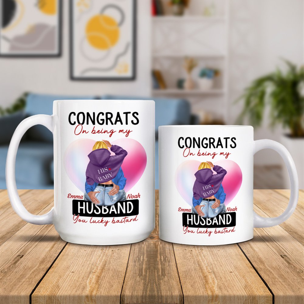 Esta taza se puede personalizar con el nombre de su amante. Además, puede personalizar la imagen de dibujos animados de usted y su amante. El mensaje "Congrats On Being My Husband You Lucky Bastard" está impreso en la taza, por lo que es un recuerdo perfecto para conmemorar su compañerismo y amor, y merece ser apreciado.