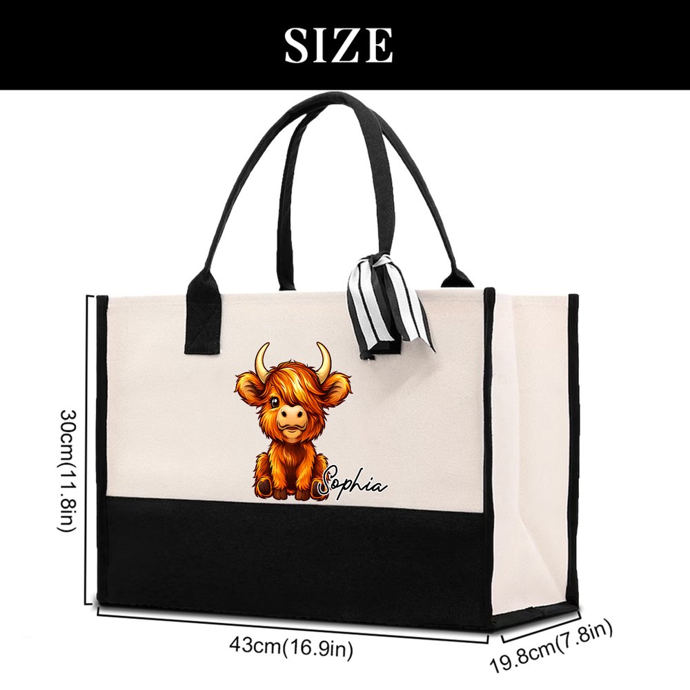 Esta bolsa de mano presenta una sencilla combinación de colores en blanco y negro adornada con un simpático dibujo animado de una vaca de las Highlands, que permite personalizar el nombre. El diseño general combina el encanto lúdico con un aspecto minimalista y elegante, mostrando personalidad sin dejar de ser práctico para el uso diario. Puede elegir el bolso de mano solo o combinarlo con un neceser a juego de la misma serie para satisfacer diversas necesidades de estilo.