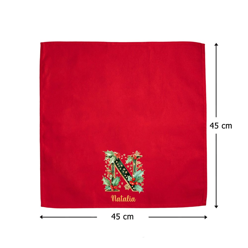 Estas servilletas presentan iniciales y nombres navideños personalizables con diseños de acebo y motivos festivos. Transforman tu mesa de Navidad en un espacio personalizado y encantador, agregando un toque único y especial a cada comida.