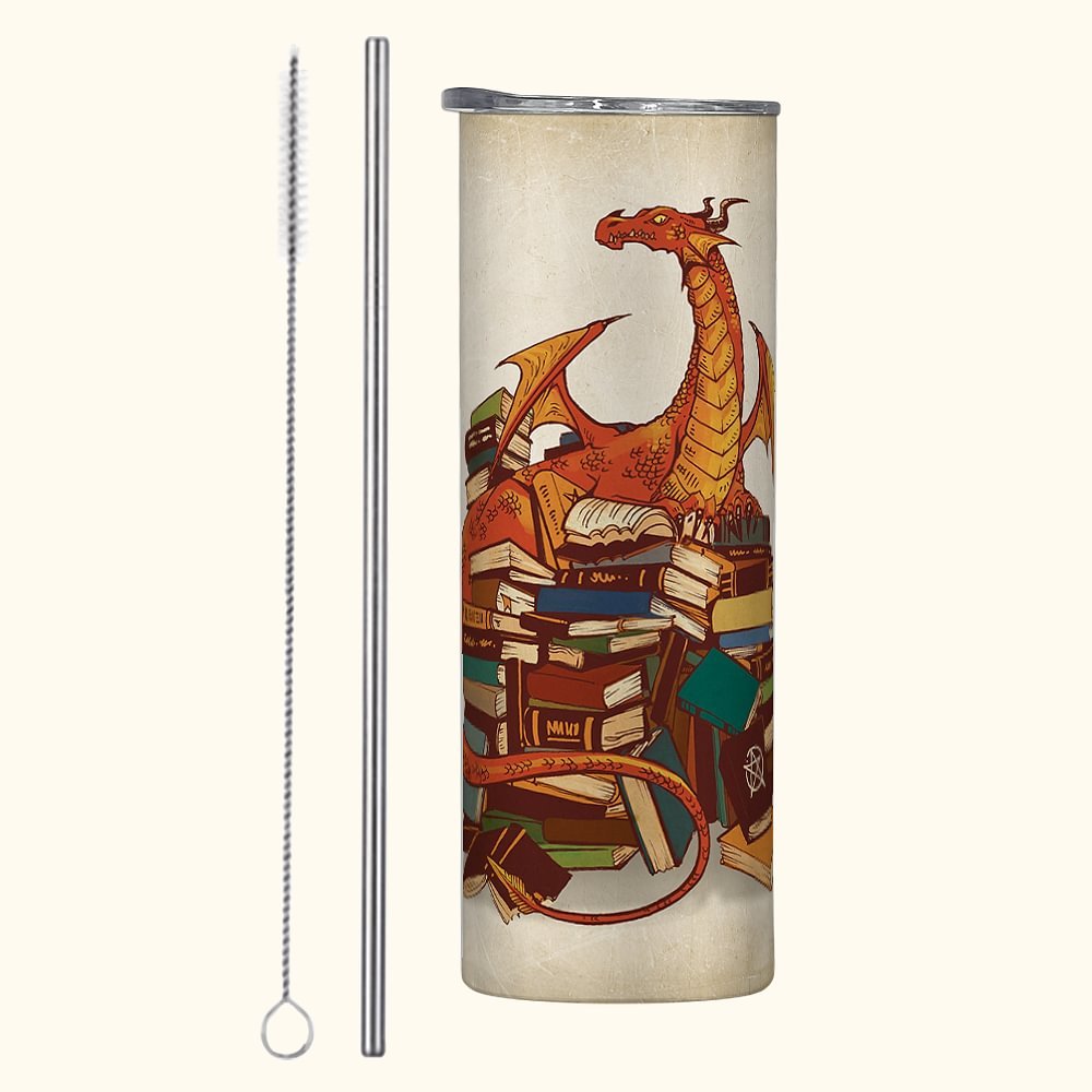 Nuestro vaso delgado está diseñado a partir de la leyenda occidental cuento libro dragón, con el patrón intrincado y realista dragón gigante y cita clásica, por lo que es un regalo perfecto para los amantes de los libros y ávidos lectores.