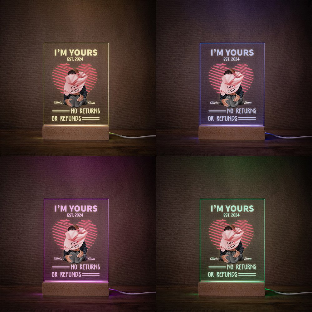 This is a couple-themed acrylic ornament, you can customize it according to the image of yourself and your partner to express your love to them and add some personal style and taste. The message "I Am Yours No Returns Or Refunds" is printed on the acrylic ornament to cherish the love story between you and your lover.