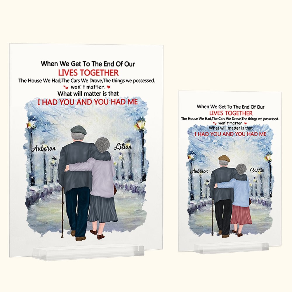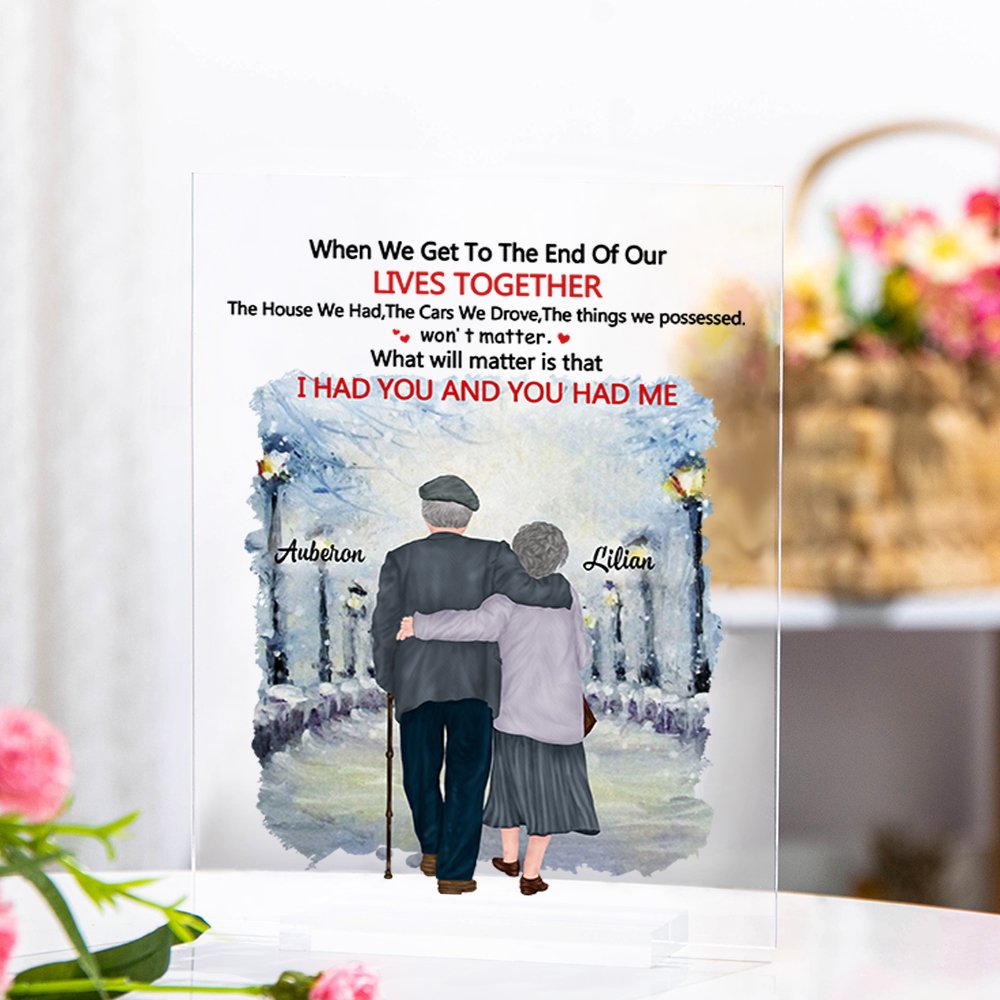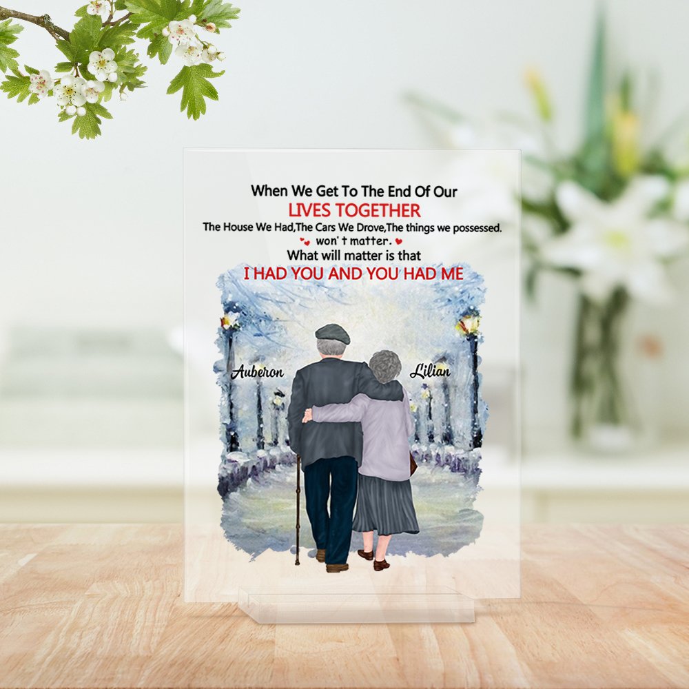 La decoración acrílica está personalizada con la espalda de una pareja de ancianos, puedes personalizar el nombre, los peinados y el estilo de vestir, creando una escena única con un poema de amor, expresando tu amor por tu familiar.