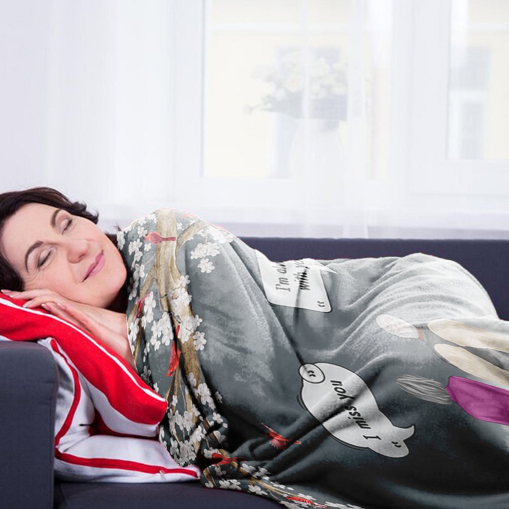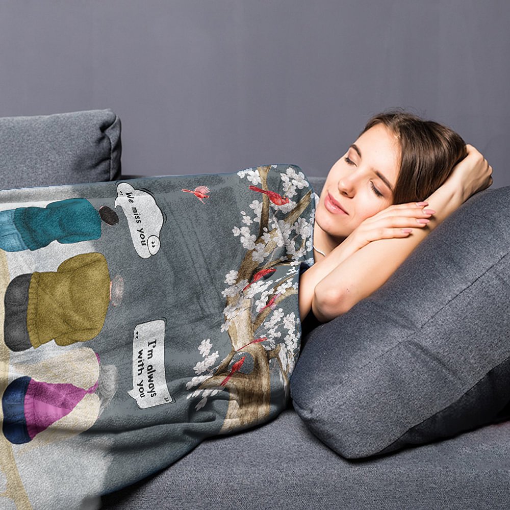 El mensaje "I miss you/We miss you, I'm always with you/We're always with you" está bellamente impreso en la manta, recordando a la gente que recuerde siempre a los seres queridos que han fallecido.