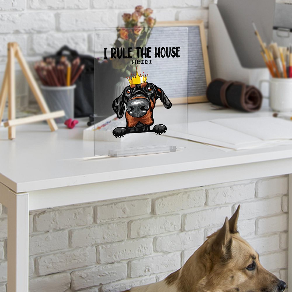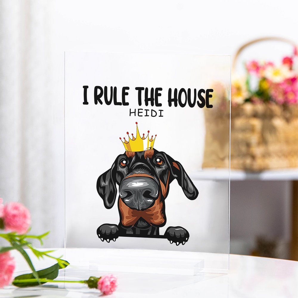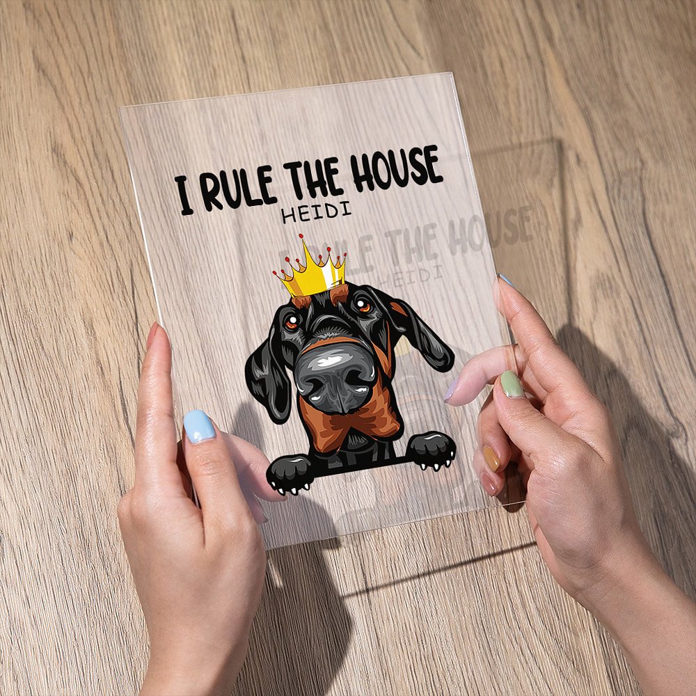 El mensaje "We Rule The House" está bellamente impreso en la placa acrílica, expresando las emociones de las mascotas y sus dueños en un lenguaje ingenioso y divertido.