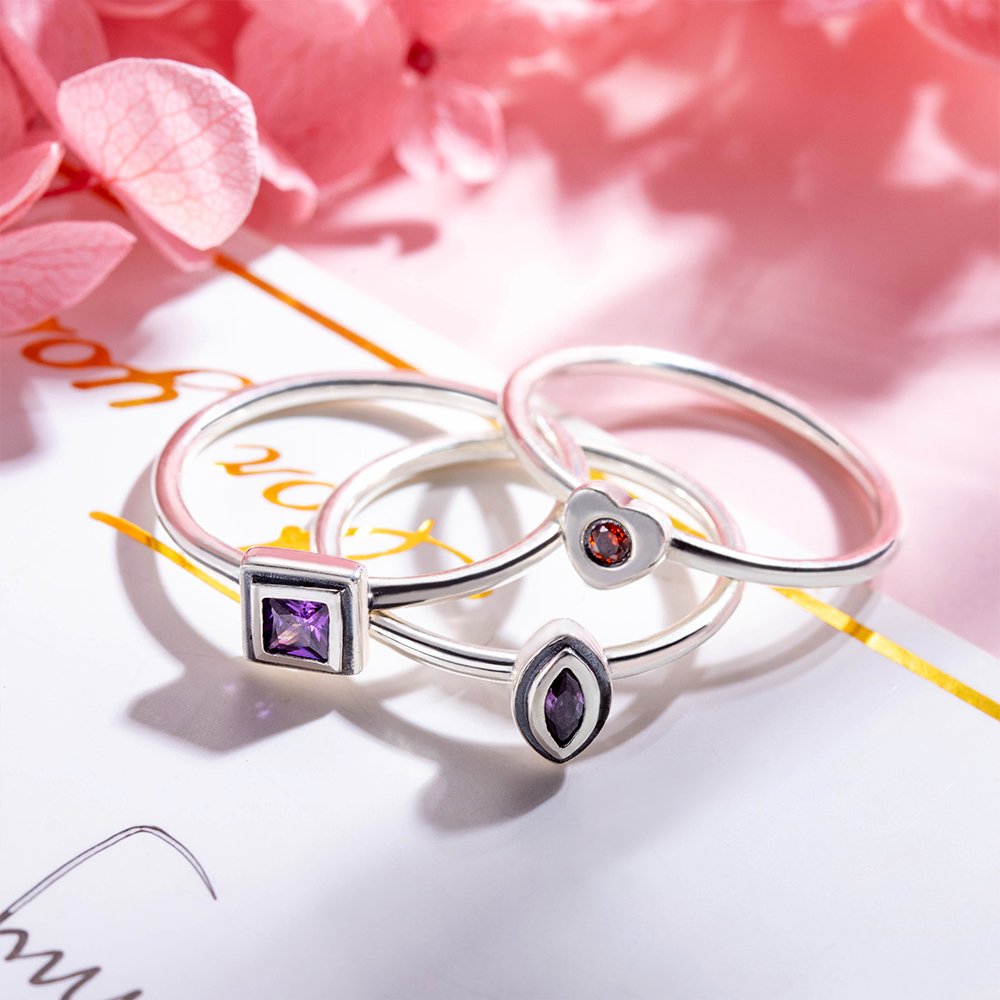 - Cuando decida comprar más de un anillo de este tipo, asegúrese de elegir el estilo de gema que le gusta para cada anillo y el mes de la piedra de nacimiento para cada anillo. El anillo de estilo inicial puede elegir 26 letras, símbolos de cruz y corazón. Otra cosa a tener en cuenta es que la piedra de nacimiento del estilo corazón es redonda.