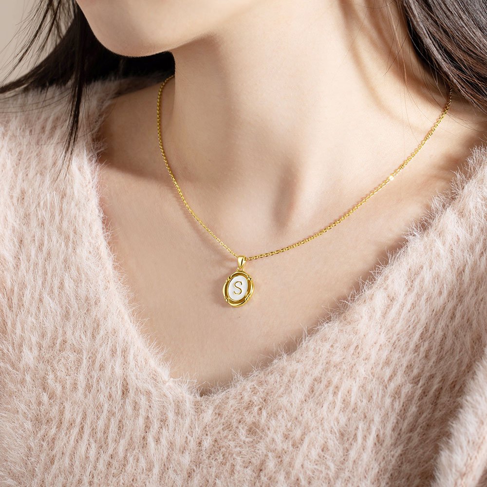 Este colgante ovalado presenta un precioso diseño en oro y esmalte blanco que recuerda a una época más clásica y de estilo vintage. Una sencilla cadena en forma de O con un solo gancho, fácil de llevar, resistente y fiable, se puede combinar con cualquier ropa y es adecuada para cualquier ocasión.