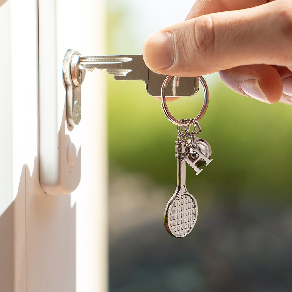 El llavero se puede personalizar con una inicial, lo que aumenta su exclusividad y su toque personal.