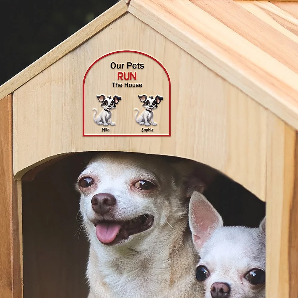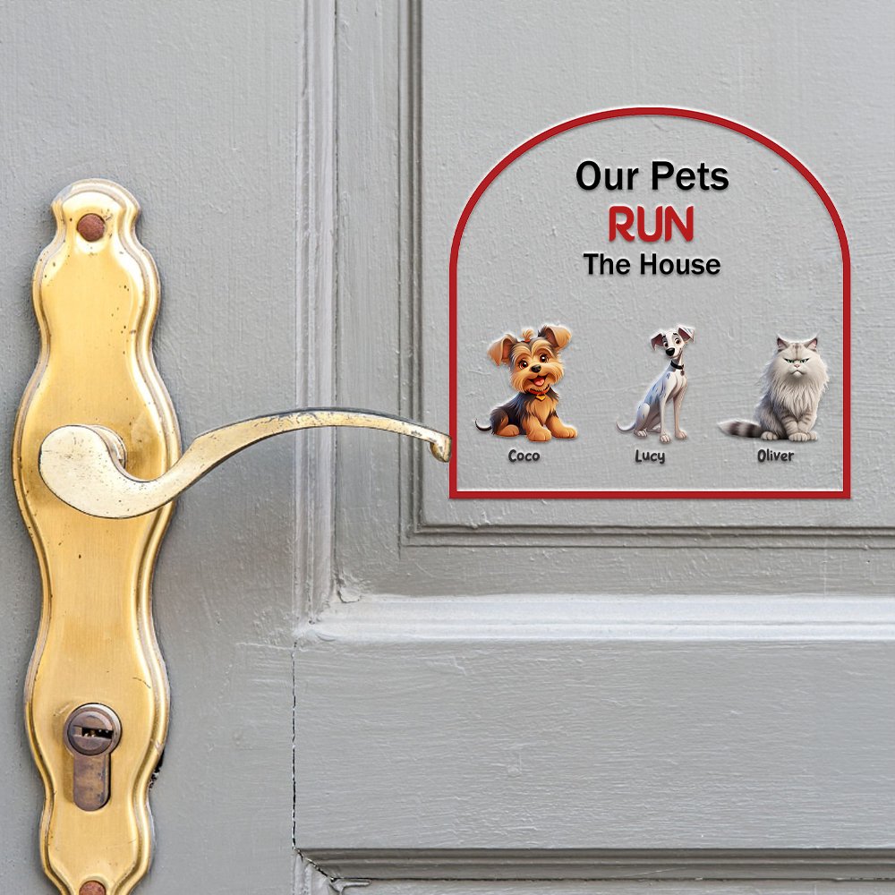 Esta pegatina está diseñada con simpáticas imágenes de mascotas de dibujos animados en 3D. Puedes personalizar de 1 a 6 mascotas y combinarlas con textos humorísticos como "Mantén la puerta cerrada, los gatos planean escaparse", "Perros salvajes con patas dentro", etc., que son vivos e interesantes. Además, la pegatina también admite la personalización del nombre de la mascota para hacerla más personalizada.