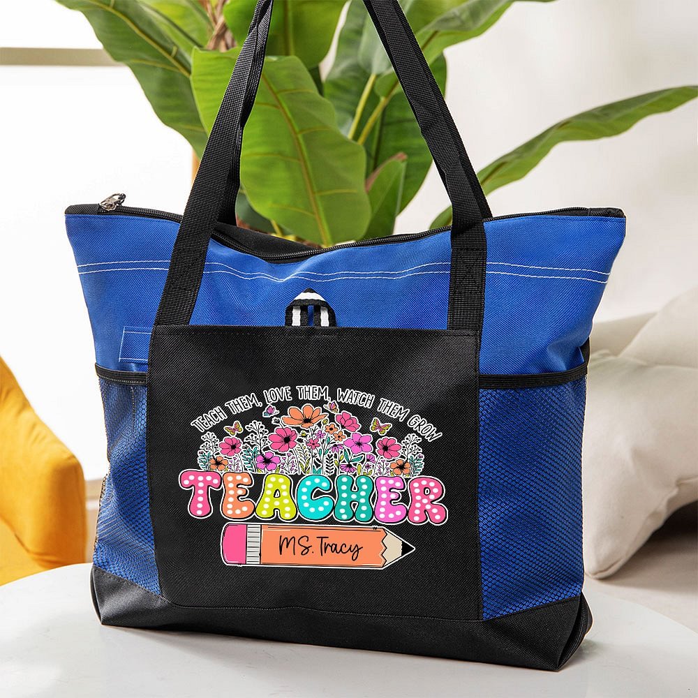 La bolsa de mano presenta un cautivador diseño de flores silvestres, que simbolizan el crecimiento y el potencial de floración. El estilo lápiz lleva impreso el mensaje "Enséñales, quiérelos, míralos crecer", y puedes personalizarla con su nombre, mostrando tu agradecimiento por su dedicación y duro trabajo.
