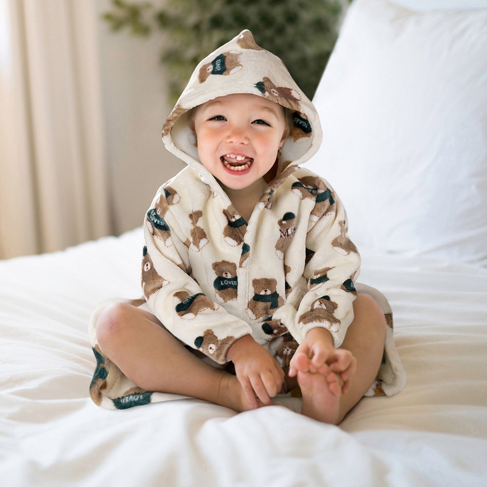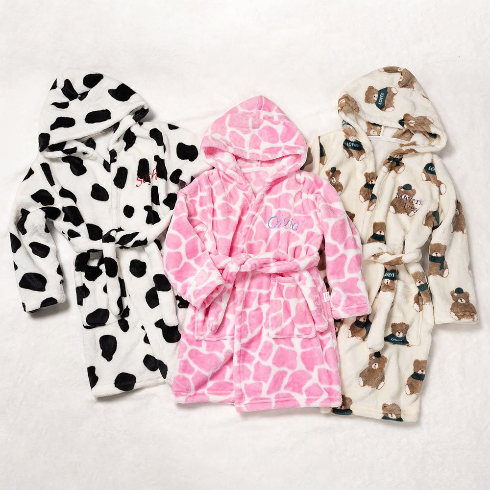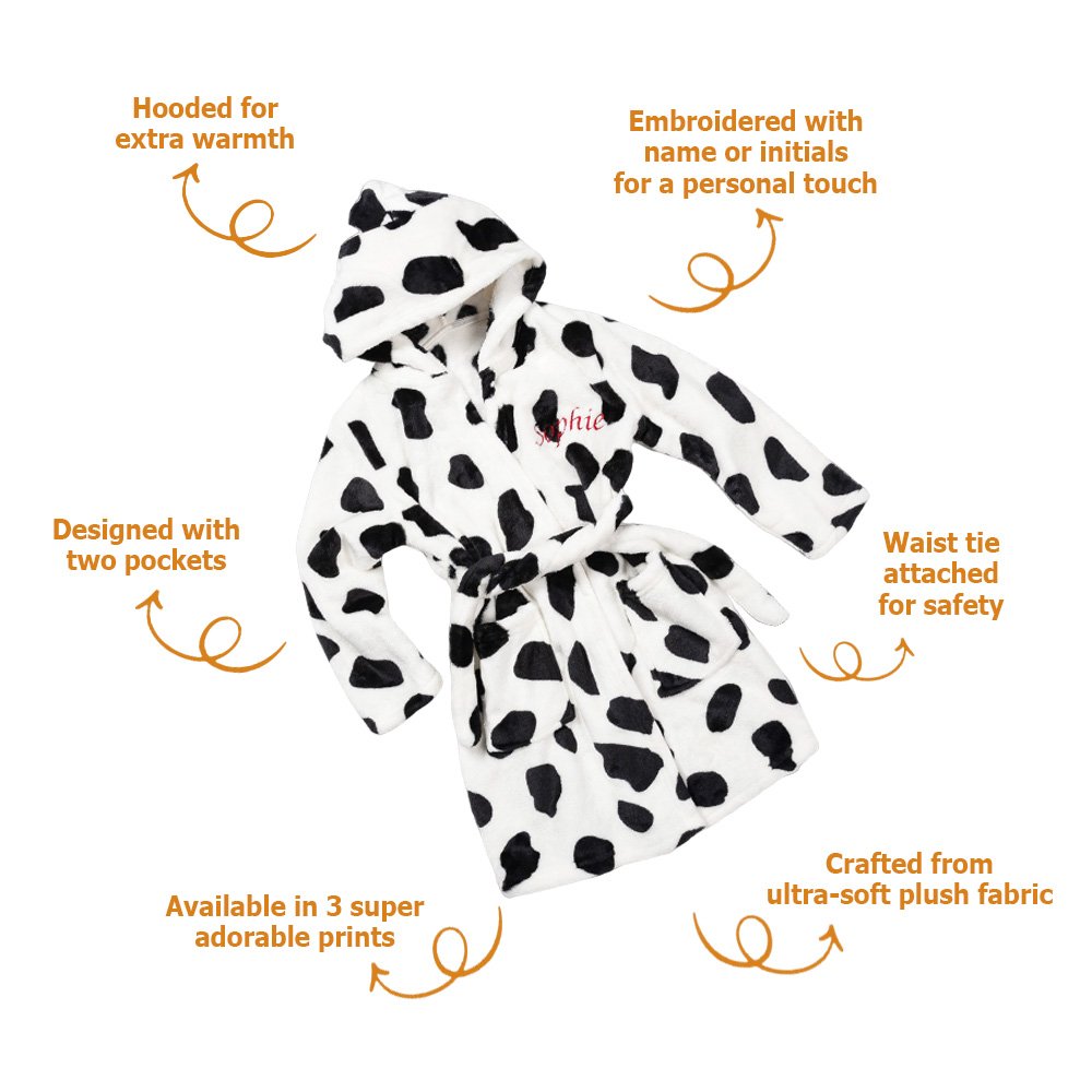 Combinando practicidad con un toque personal único, este albornoz está disponible en tres bonitos diseños: Estampado de leopardo, Estampado de vaca y Estampado de osito, con un delicado bordado del nombre de tu bebé. Los diseños personalizados transforman un simple albornoz en un precioso recuerdo que padres e hijos atesorarán durante años.