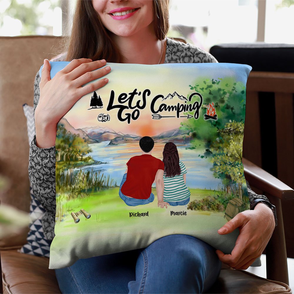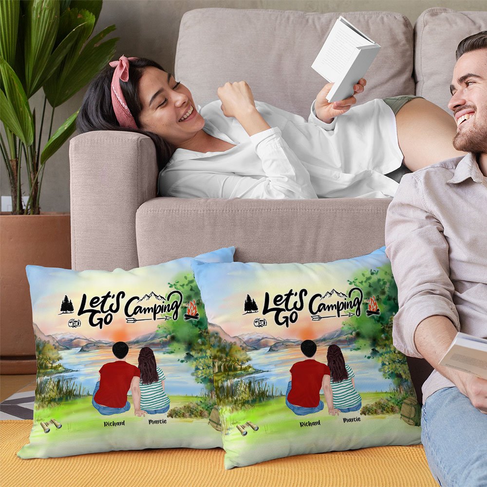 Funda de cojín de acampada familiar personalizada Vamos de acampada Regalo de cumpleaños Regalo de San Valentín para el salón