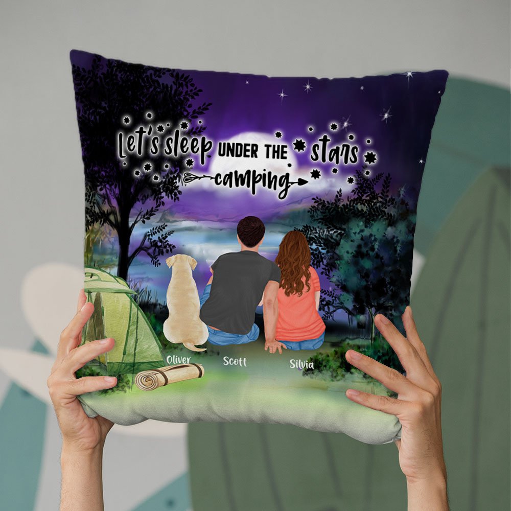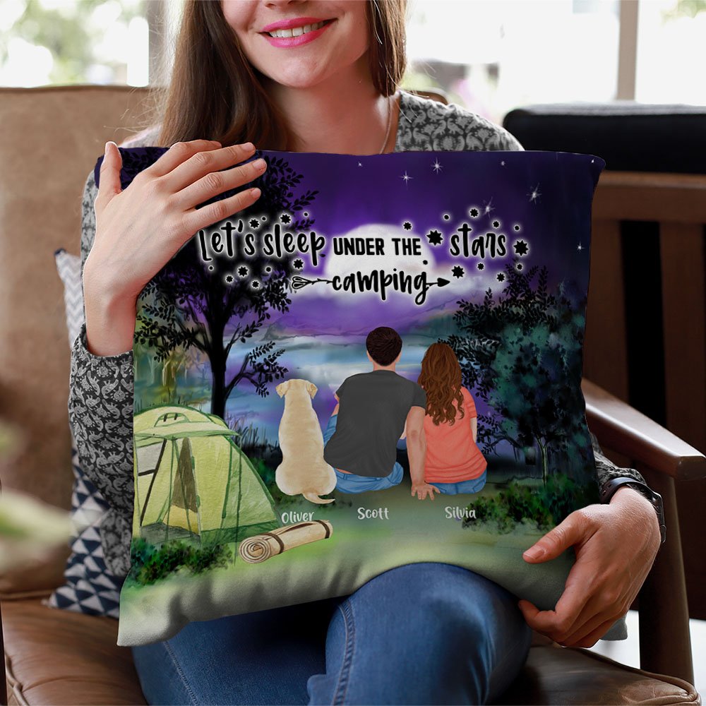 Personalizado Vamos a dormir bajo las estrellas Camping Familia Funda de almohada Regalo de aniversario Regalo de cumpleaños