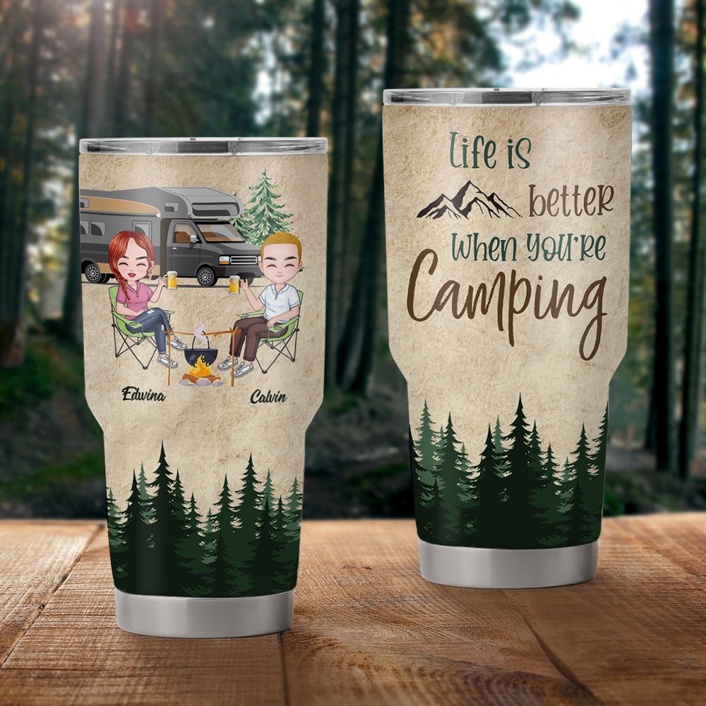 Vaso personalizado Life Is Better When You're Camping Forest Landscape 30oz Regalo de cumpleaños Regalo de camping