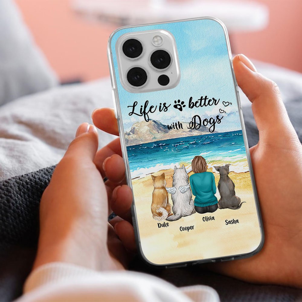 Funda de teléfono personalizada Life Is Better With Dogs Sea Mountain Christmas Birthday Gift for Dog Lovers