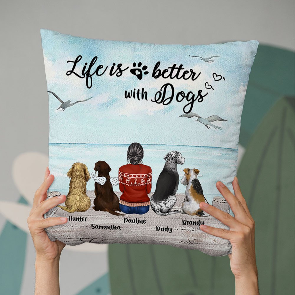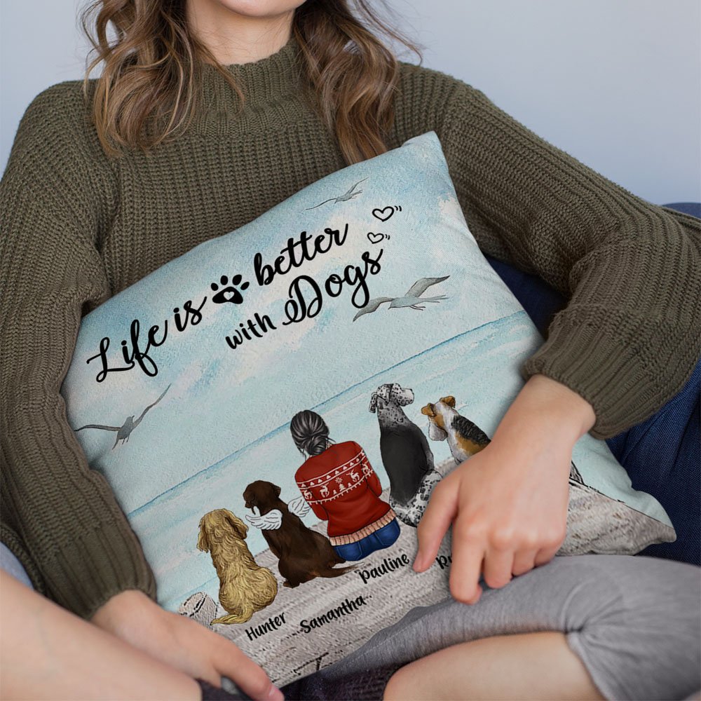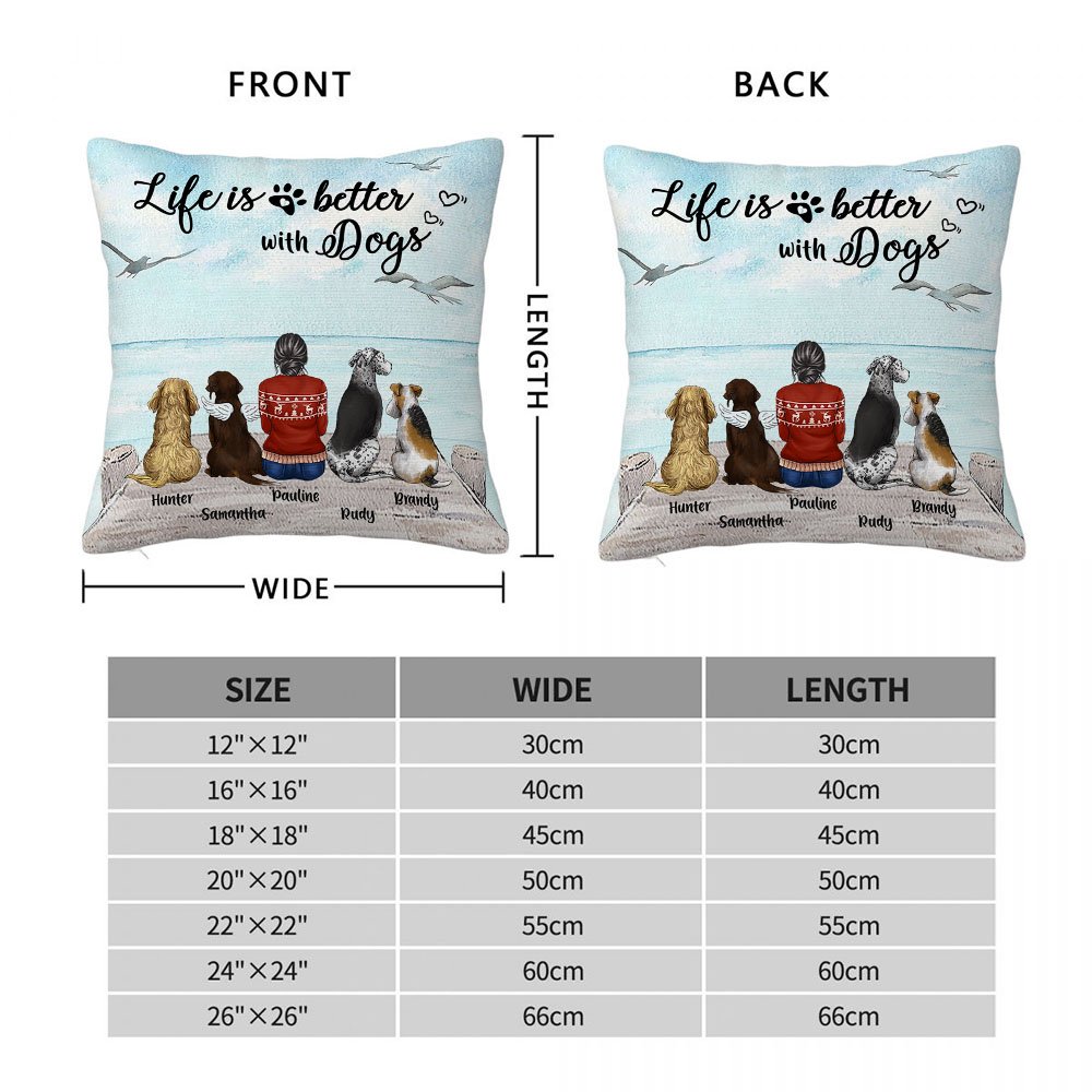 Funda de cojín personalizada Life Is Better With Dogs Regalo de cumpleaños y Navidad para los amantes de los perros