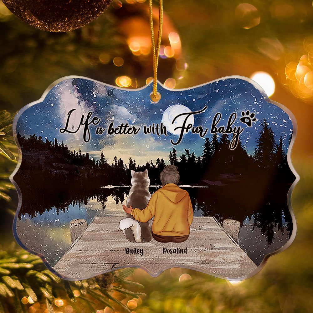 El mensaje "Life Is Better With Fur Baby/Babies" está bellamente impreso en el adorno, recordando los buenos momentos compartidos entre perros y dueño.