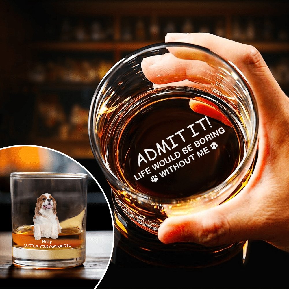This glass features a playful and heartwarming design that celebrates the unconditional love and joy pets bring our lives. The inscription "Life Would Be Boring Without Me" adds a touch of humor and sentimentality, making it a perfect gift for any dog or cat lover.