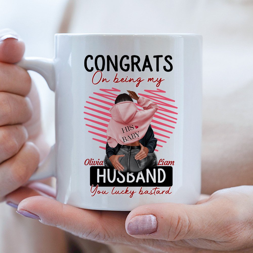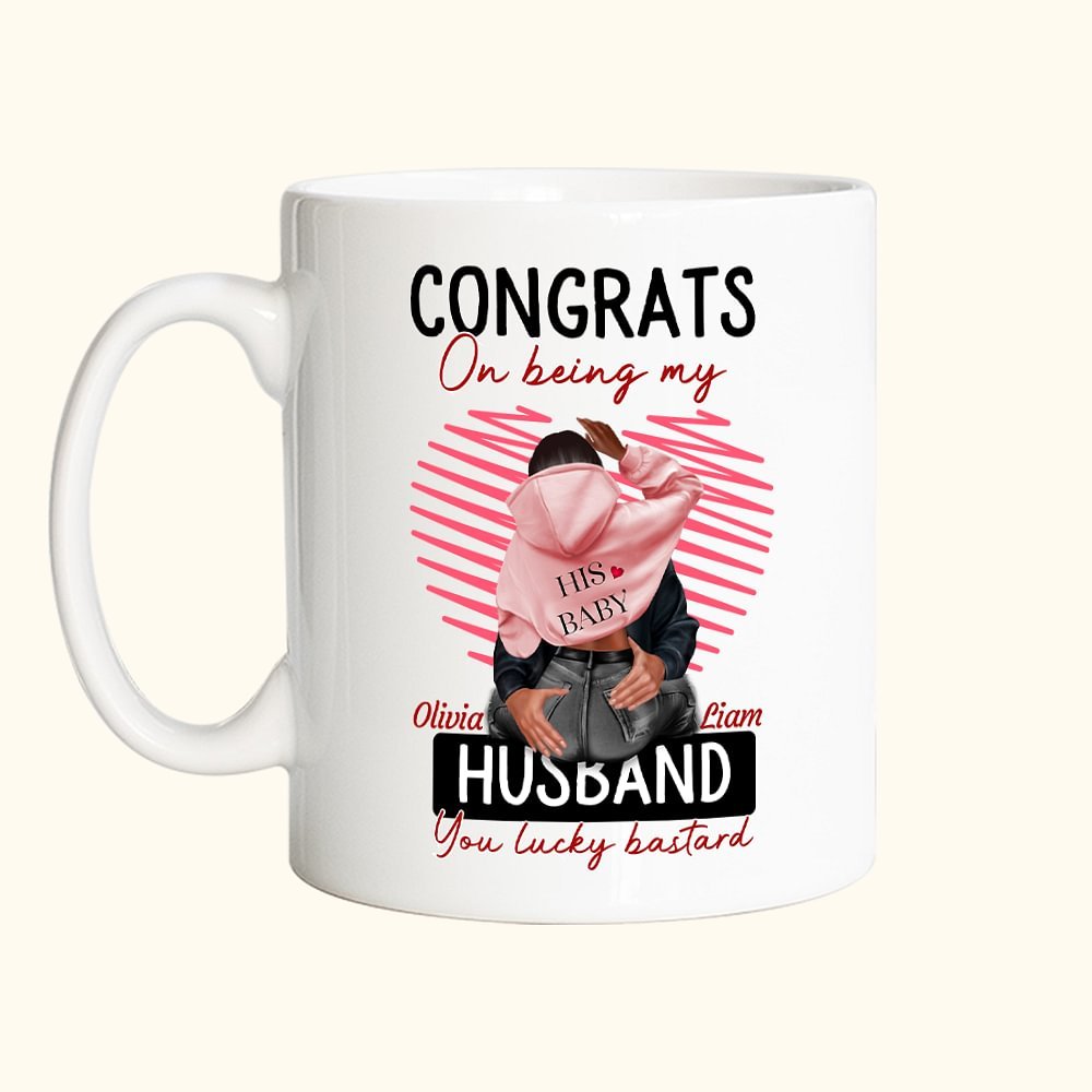 Esta taza se puede personalizar con el nombre de su amante. Además, puede personalizar la imagen de dibujos animados de usted y su amante. El mensaje "Congrats On Being My Husband You Lucky Bastard" está impreso en la taza, por lo que es un recuerdo perfecto para conmemorar su compañerismo y amor, y merece ser apreciado.