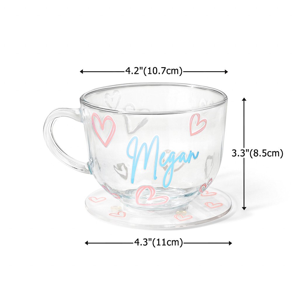 Con una cómoda asa y un posavasos opcional, este vaso de cristal mejora la experiencia de beber y añade un toque romántico. La capacidad de 16 oz lo hace perfecto para el café de la mañana, té de la tarde, o una bebida acogedora compartida con un ser querido. El diseño en forma de corazón añade un toque elegante y sentimental a cualquier mesa.