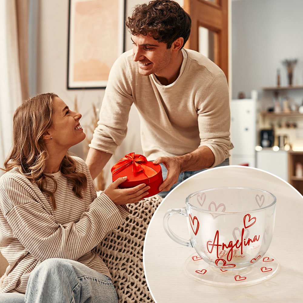 Personalízala con un nombre para crear un recuerdo único que exprese tu afecto. Con su elegante diseño en forma de corazón, esta taza es a la vez significativa y práctica, por lo que es una adición apreciada a cualquier colección de vajilla.