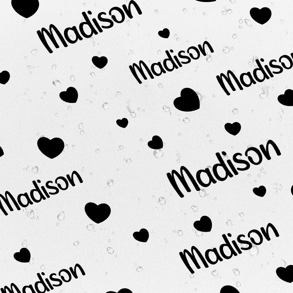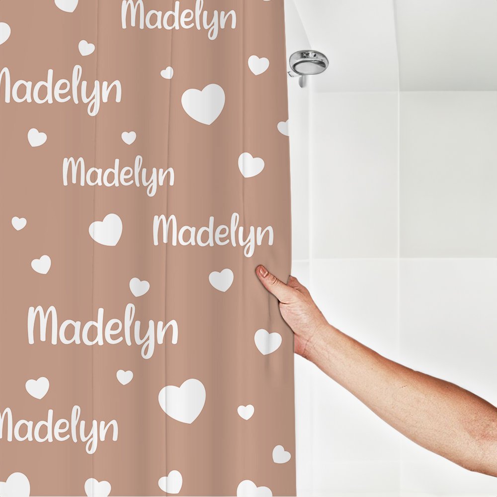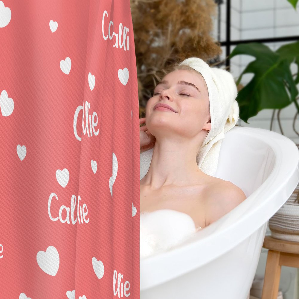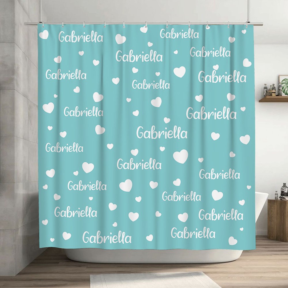Nuestra cortina de ducha corazón ofrece una opción de personalización única, que le permite personalizar su nombre junto a bonitos dibujos de corazones. Transforma tu baño en un espacio cálido y acogedor con esta pieza única.