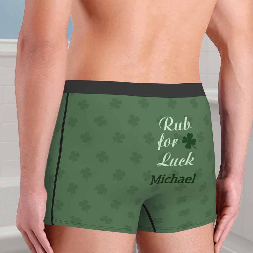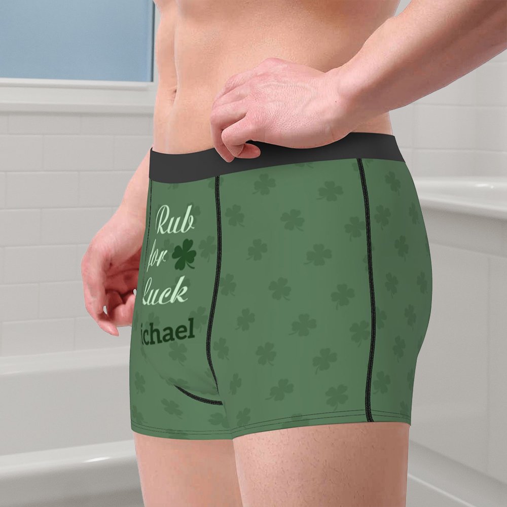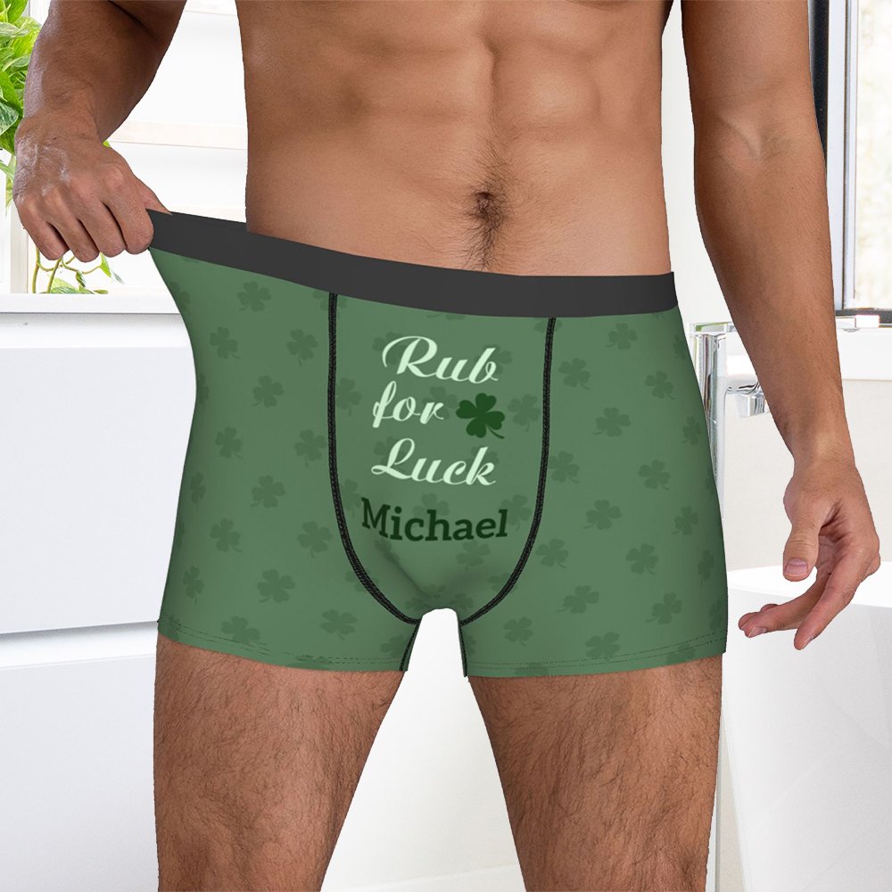 La característica más destacada de este calzoncillo es el diseño del trébol de cuatro hojas de la suerte. Símbolo de buena suerte y fortuna, el trébol de cuatro hojas es un símbolo icónico asociado al Día de San Patricio. El mensaje "Rub for Luck" ("Frota para tener suerte") del calzoncillo añade un toque pícaro y divertido. La cita, con su vibrante color verde, complementa a la perfección el motivo de la suerte, creando un aspecto visualmente llamativo y festivo. Se sentirá como si llevara consigo un amuleto de la suerte allá donde vaya.